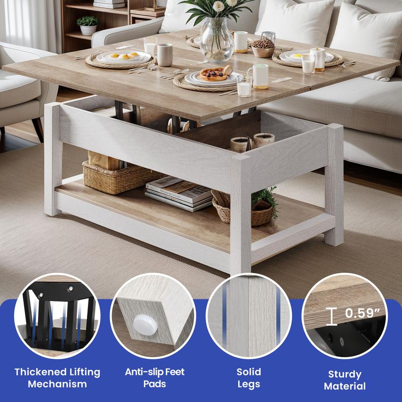 Lift Up Coffee Table: The tabletop of this wooden coffee table can be effortlessly elevated to a comfortable height to create a spacious workspace or dining surface, no longer need to lean forward. The heavy-duty metal mechanism allows smooth and easy operation.