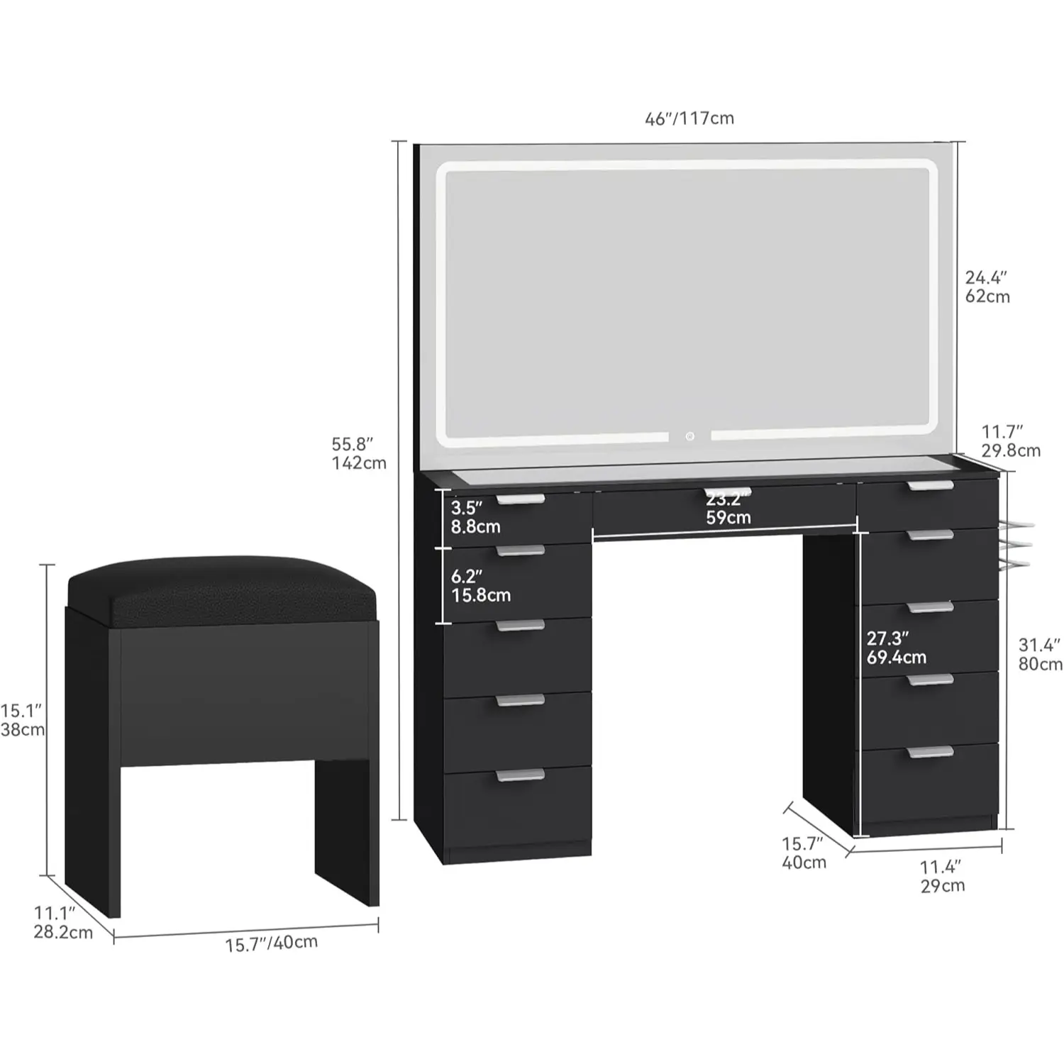 Black LED - 11 Drawers