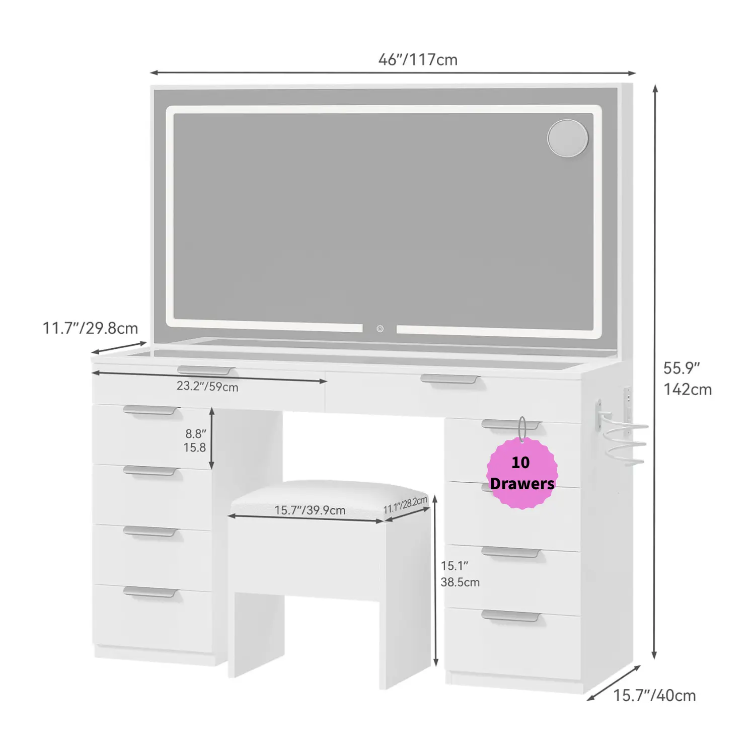 White LED - 10 Drawers