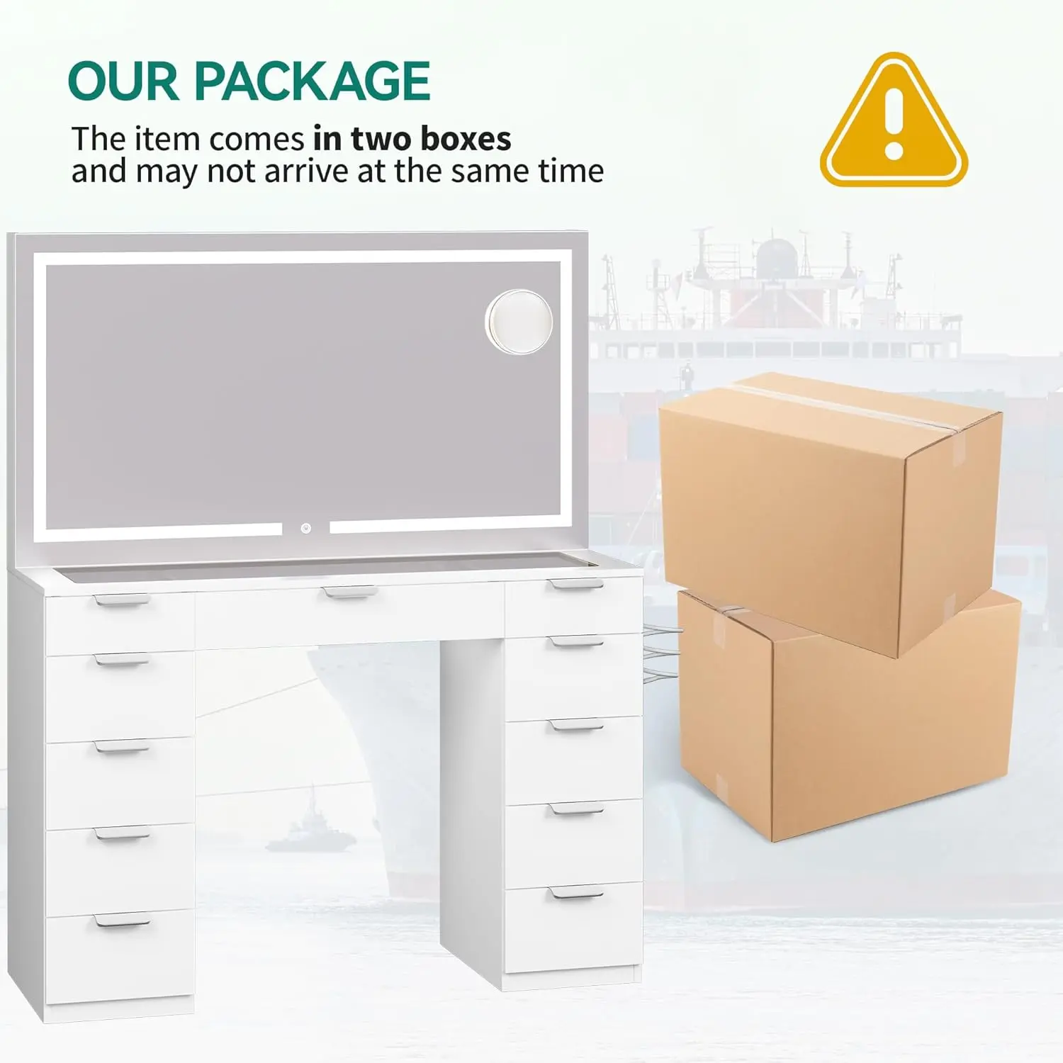 Every piece came dirty or chipped, and the box itself arrived broken. The delivery person even threw it onto the ground. The material of the vanity is very cheap and weak, and most of the parts were either damaged, scratched, or dirty right out of the box👎