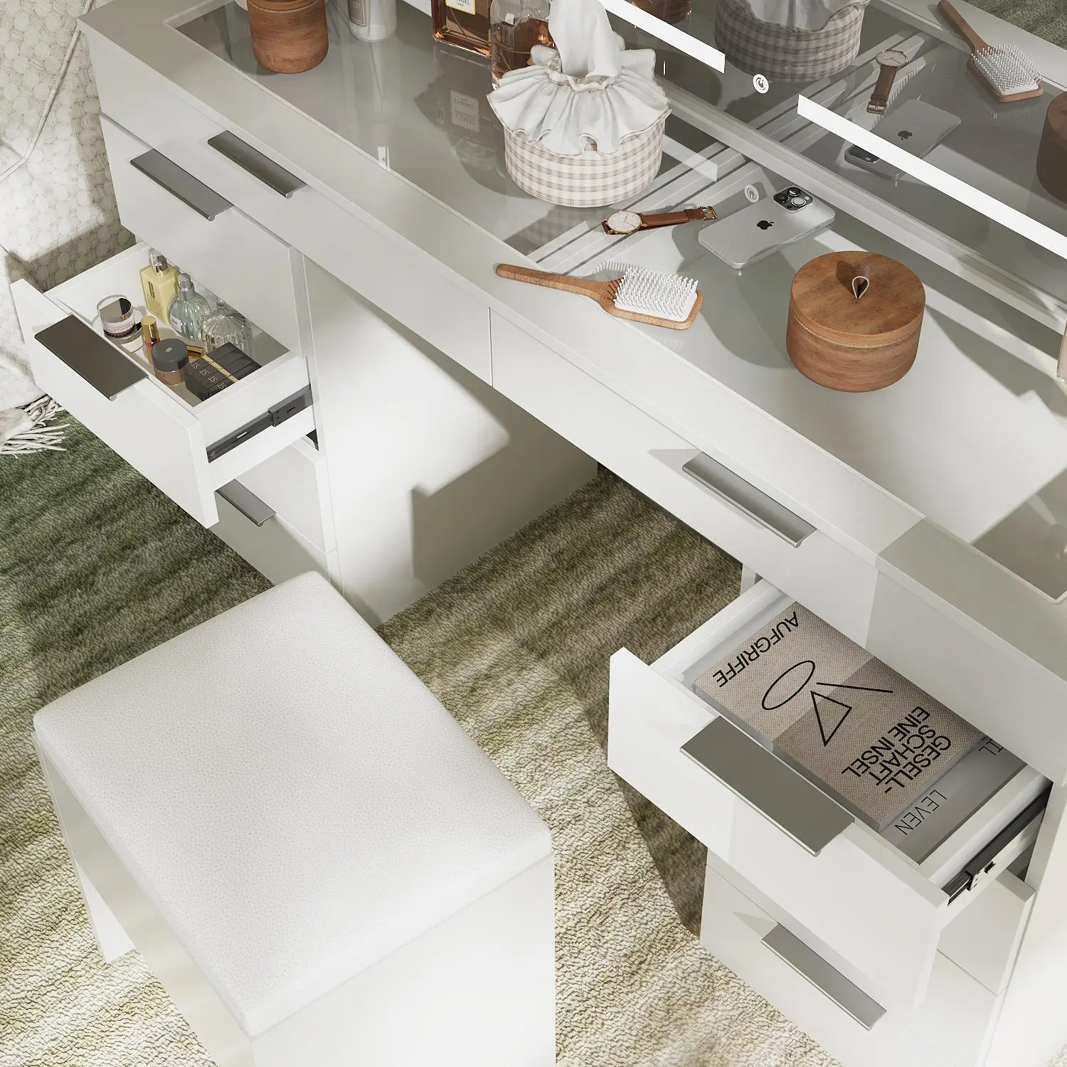 I love my vanity, super cute, it wasn’t very hard to put together but had a lot of pieces and took me forever. I would recommend getting a professional to do it or making sure you have an electric drill. I couldn’t imagine putting this together with the manual screw driver it comes with.