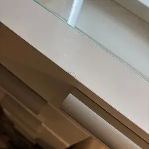 Where to start? Not only was wrong mirror sent, but the mirror/wood trim was busted. Should have gotten the LED light, but got the round bulbs. The drawers are extremely uneven and the top left won't even close. Highly disappointed in the quality and major let down as Christmas gift for my wife.