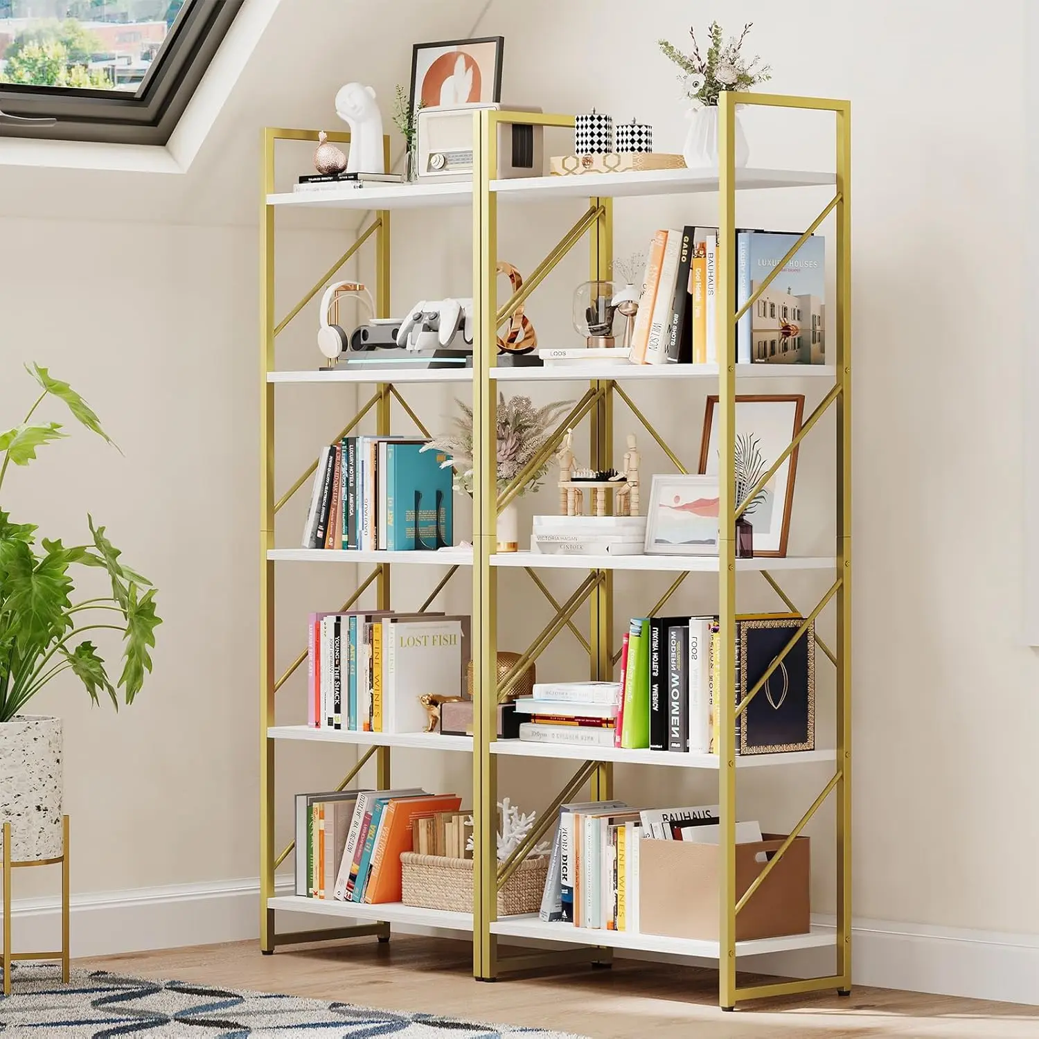 Versatile Open 5/6 Shelves - Open shelves and stable structure provide enough storage space, allowing you to show off your displays in every direction. Perfect for organizing books, family photos, potted plants, CDs, ornaments, and more.