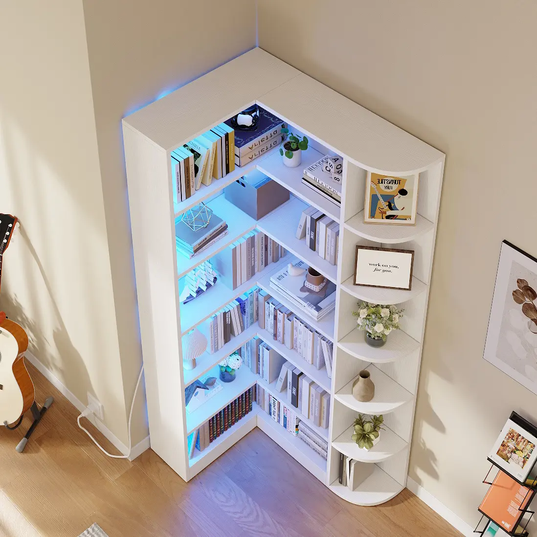 This shelf is cute! It works for its purpose, comes w LED lights, but it was HORRIBLE to put together almost 20 pages of instructions and so many parts I cried putting this together bc instructions weren’t very clear and I’ve put up a lot of shelves, it looks good though so! Overall happy