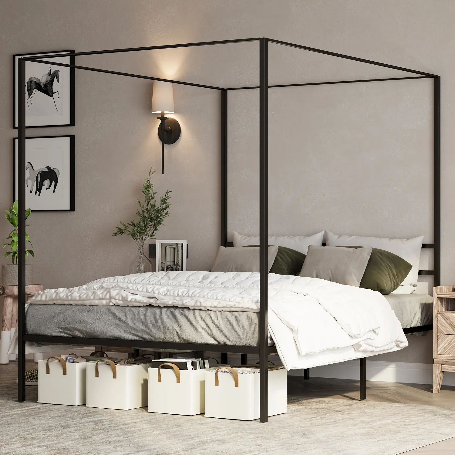 Powerful Metal Frame: Features a thick & sturdy metal frame constructed from sturdy iron to provide product with a longer lifespan; Queen bed’s can support up to 800 lbs. The weight capacity is calculated as an average after covering a 0.59-inch MDF.