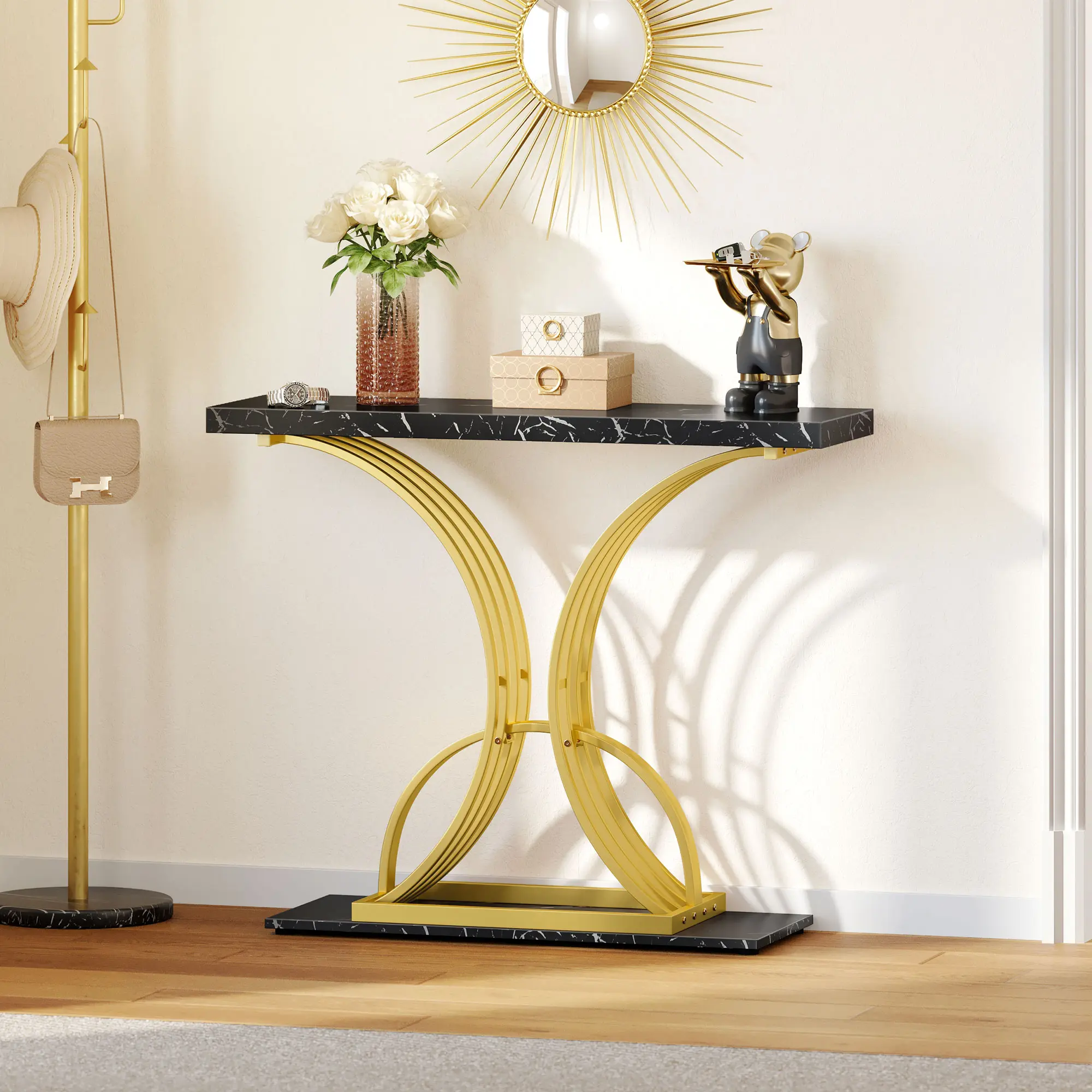 Attractive Geometric Base: With an airy silhouette, the dazzling gold frame is a work of art with its symmetrical C shape for a dash of distinction, and competently revitalizes your decor space.