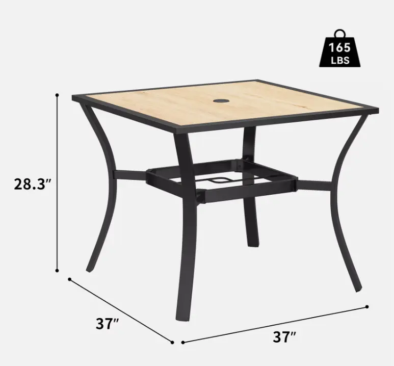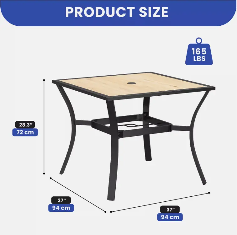 1. Durable Dining - Entertain with confidence! This table's sturdy frame (holds up to 165 lbs) and weather-resistant coating ensure years of outdoor enjoyment.