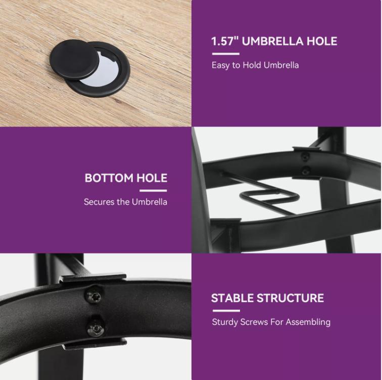 3. Sunshade-Compatible Outdoor Table - This table is equipped with a 1.57" diameter hole, perfect for inserting an umbrella to ensure you can enjoy your outdoor space in comfort, come rain or shine.