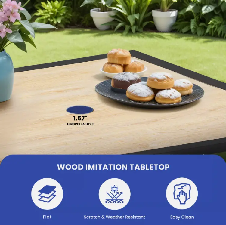 3.Easy Maintenance and Assembly: Cleaning the outdoor table is a breeze with just a damp cloth. Assembling the 6-person patio table is also a hassle-free process, making it convenient for you to set up and start enjoying your outdoor meals and gatherings in no time.