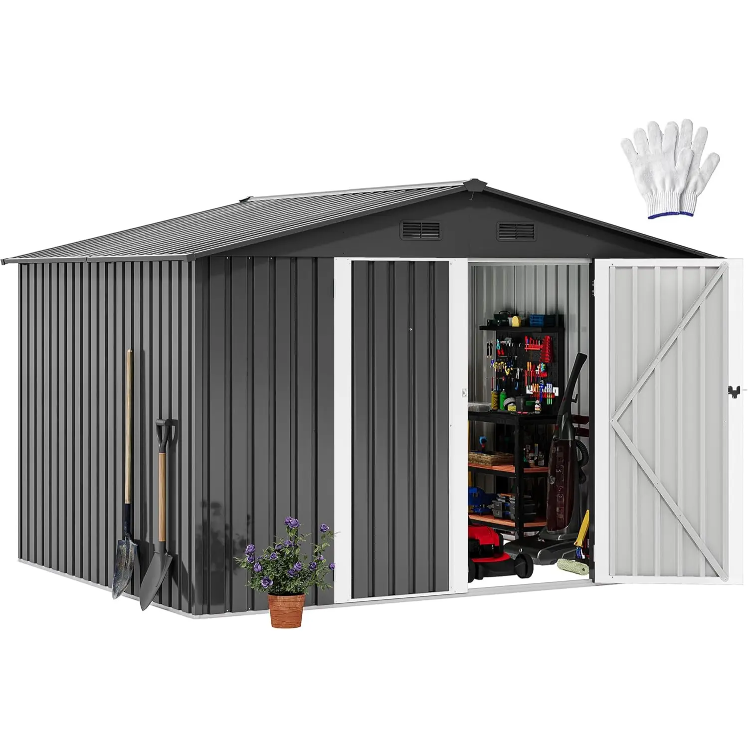 Secure & Accessible: Designed with security in mind, the garden shed features lockable doors; This allows you to use your preferred locks to guard against theft and unauthorized access. The double sliding doors enhance accessibility, making it easy to move items in and out