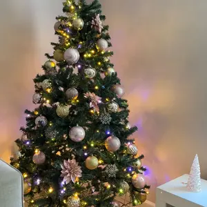 Realistic Lush Spruce: YITAHOME prelit green Christmas tree stands at 6/7.5ft with branches tips, offering a full and enduring silhouette; Its lush foliage creates a captivating holiday atmosphere, making it the centerpiece for your festive celebrations