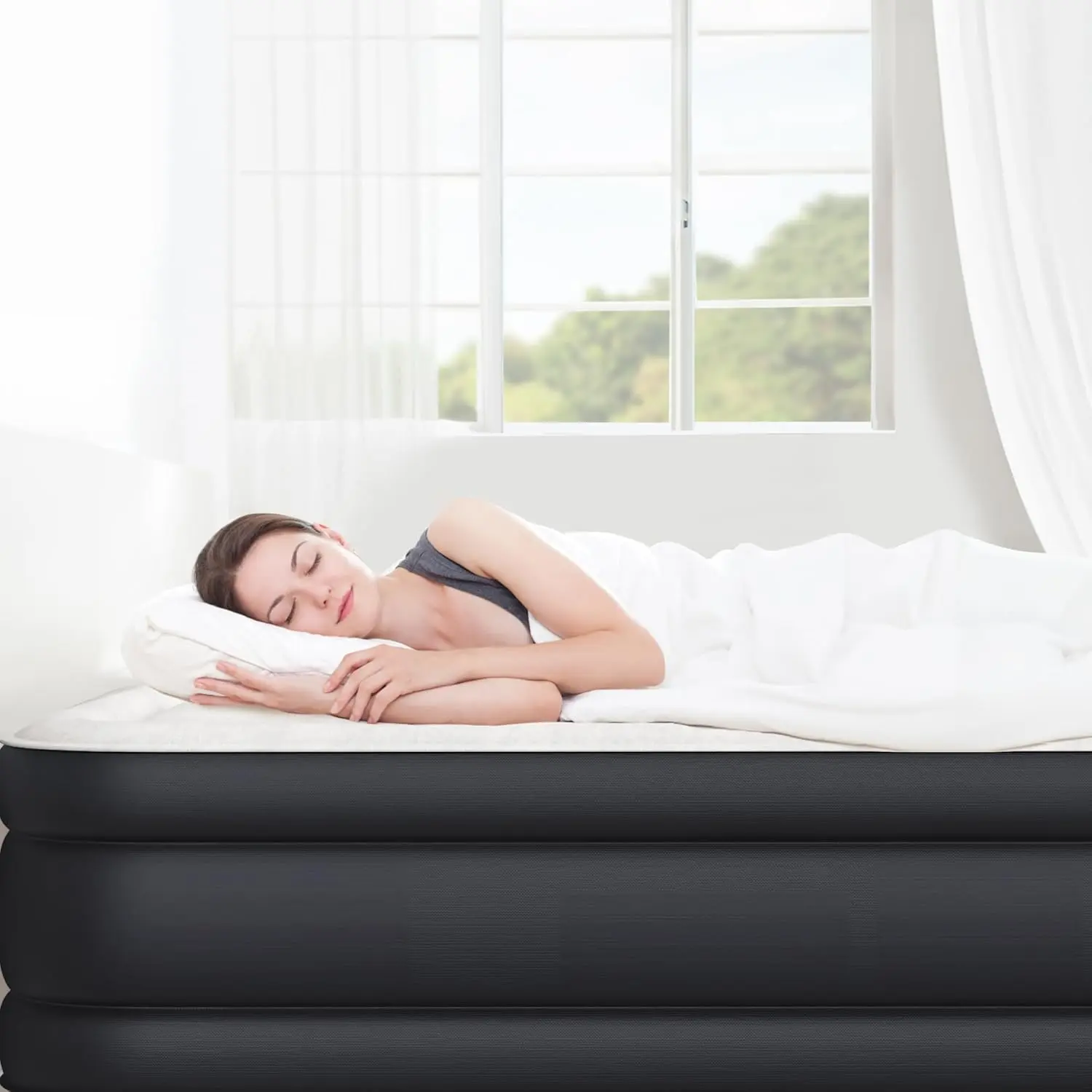 Effortless Inflation & Deflation: The queen bed mattress features a strong integrated electric pump that can easily inflate or deflate the mattress within 2-3 minutes. An external inflation valve and a travel storage bag are included, making it convenient for accommodating guests, camping trips, and travel purposes.