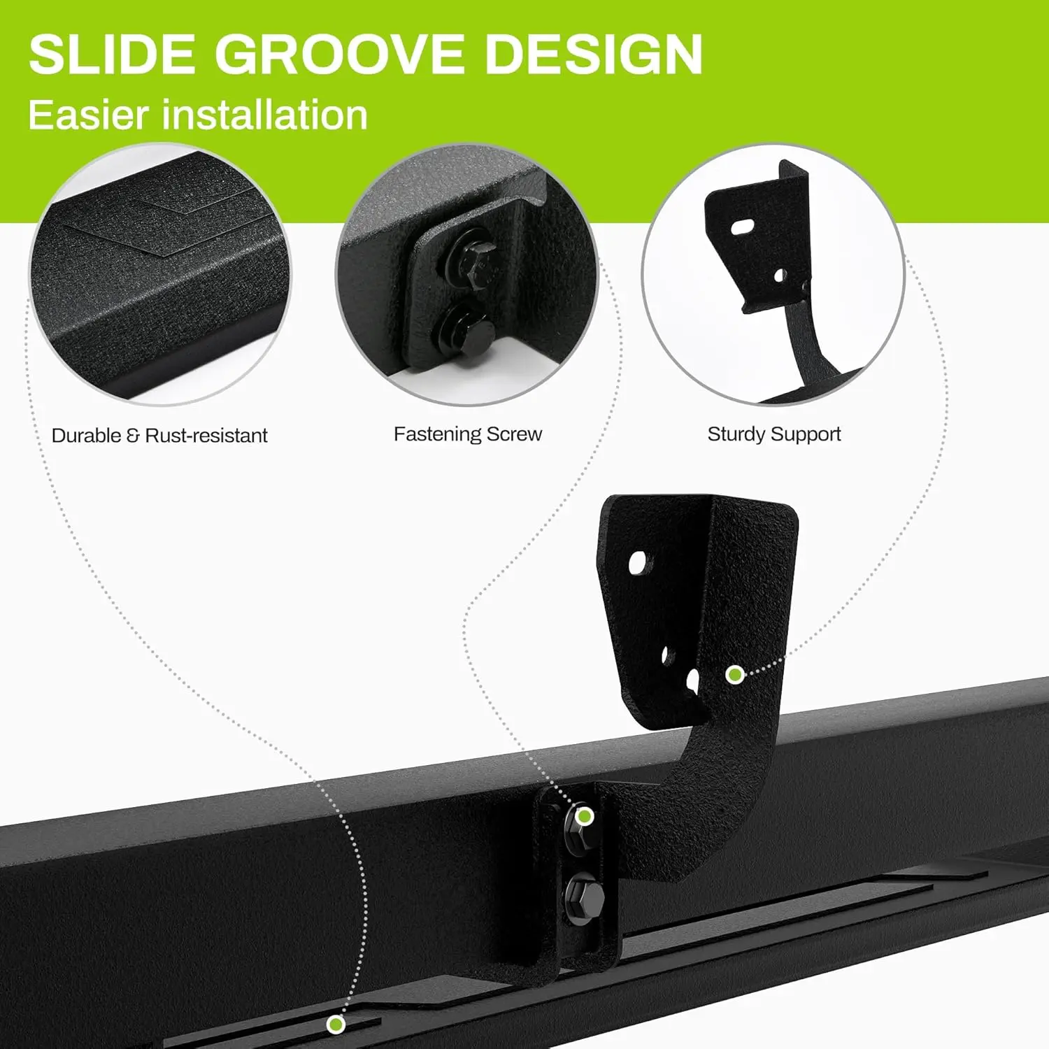 ·Black Powder Coated Nerf Bars: Durable and stylish, these bars add a sleek touch to your vehicle.