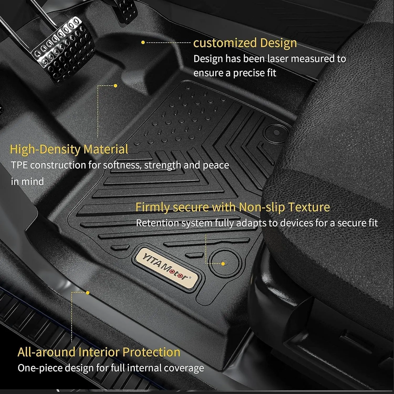 Enhance your vehicle's interior with our YITAMOTOR Floor Mats, designed to provide reliable protection for your floor liners.