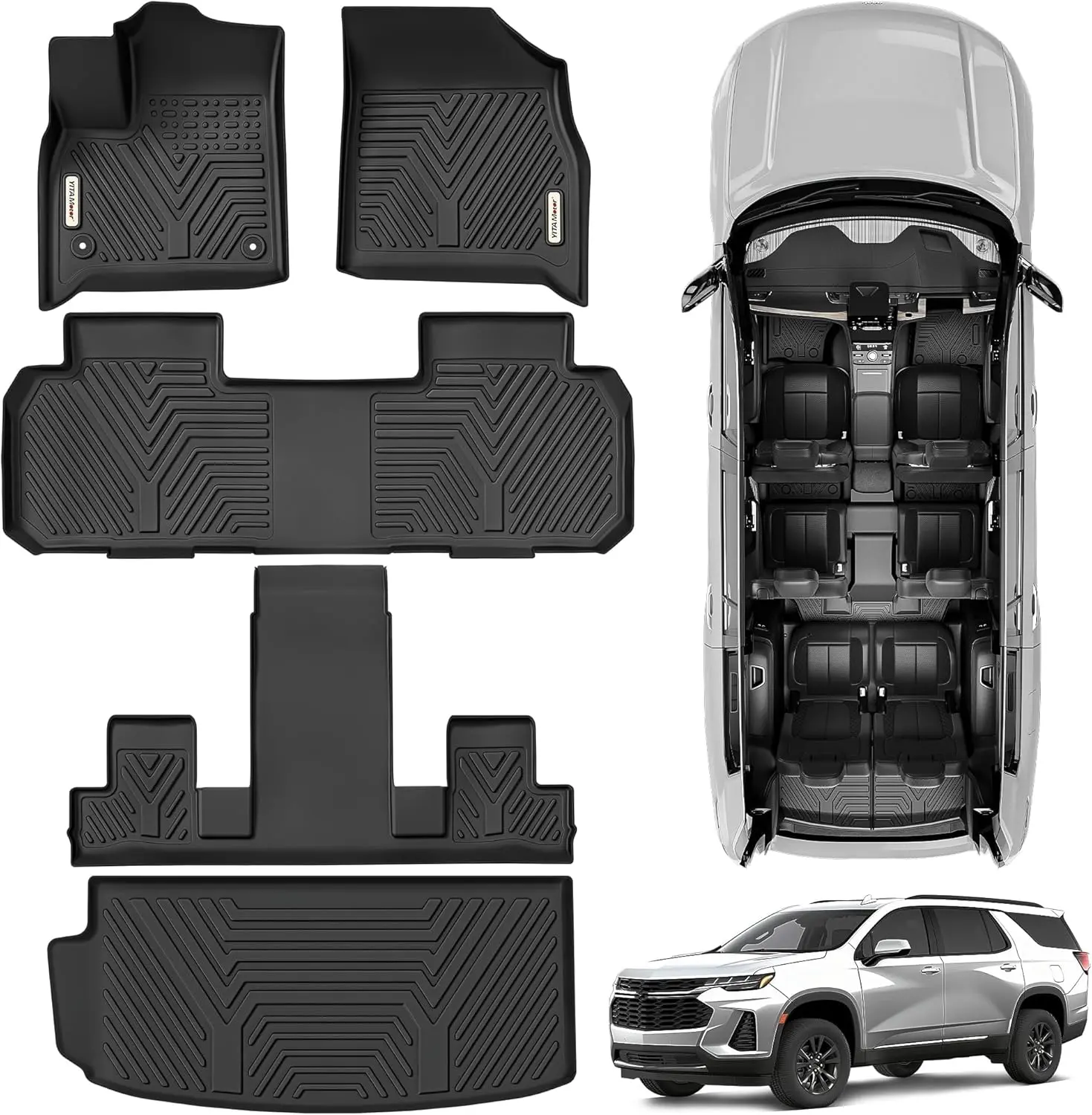 Enhance your Chevrolet Traverse's interior with our Floor Mats & Cargo Liners, designed to fit your vehicle from 2018 to 2025. These all-weather TPE rubber car mats and liners are specifically tailored for the 2018-2025 Chevrolet Traverse, ensuring a perfect fit for your 7-seat vehicle.