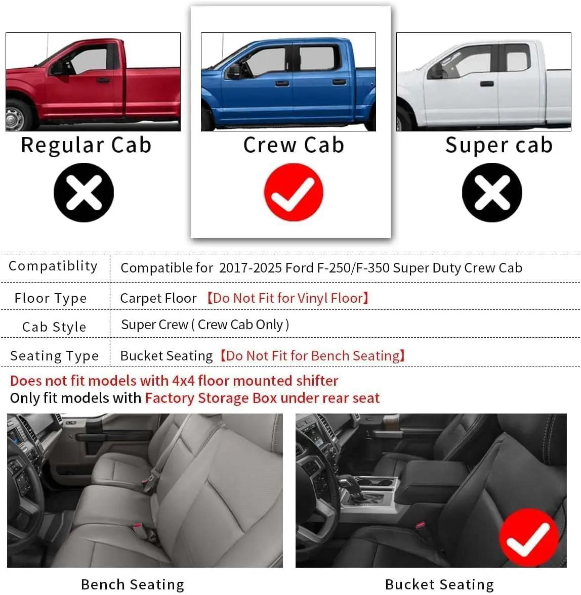 ·Custom Fit: Tailored to fit the 2017-2025 Ford F-250 and F-350 Crew Cab, ensuring a snug and secure fit.