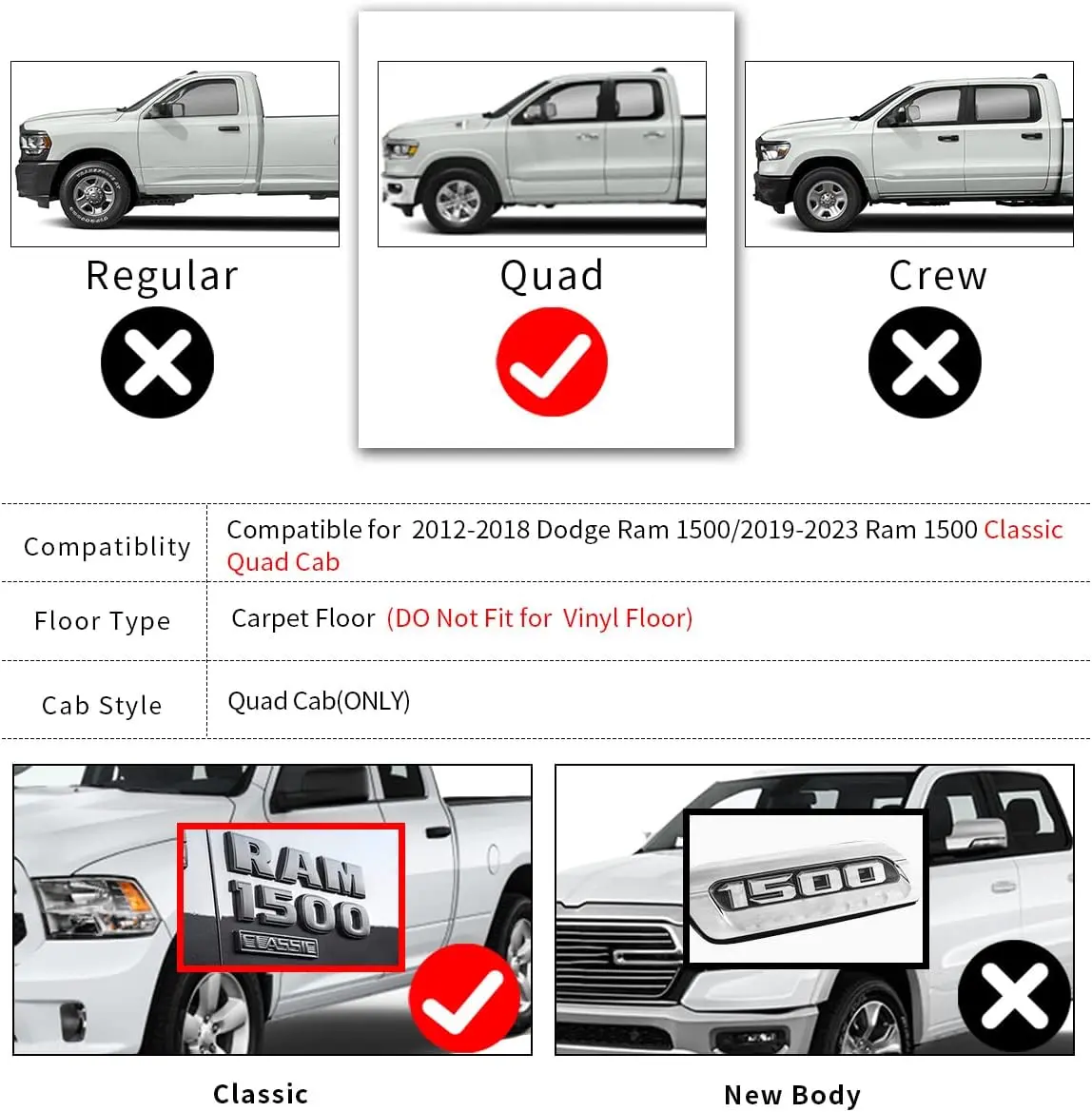 Compatible Models2013-2018 Ram 1500 Quad Cab/19-23 Ram 1500 Classic