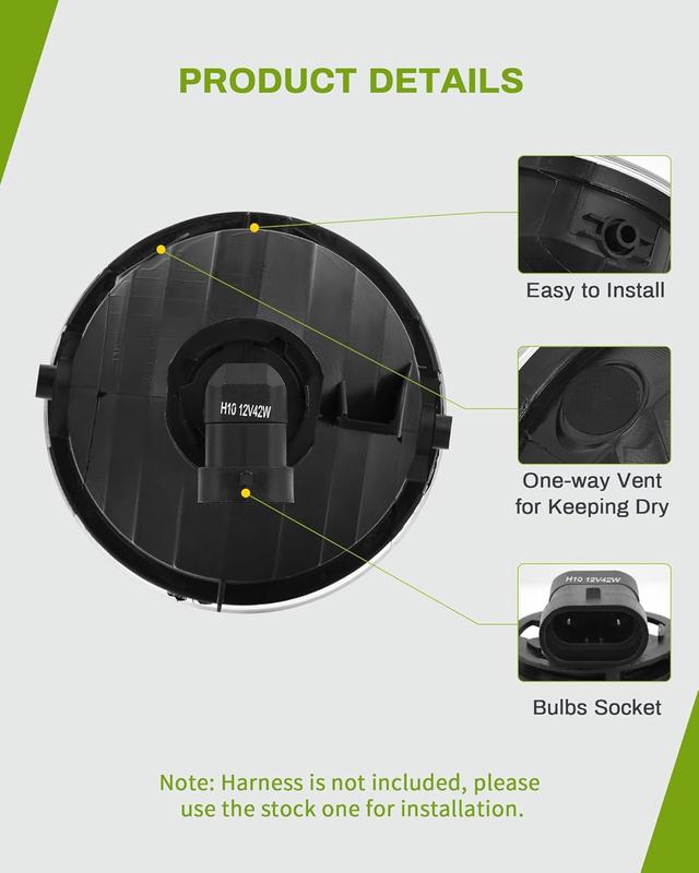 Package Included: A pair of fog lights (including driver and passenger sides) and H10 12V 42W halogen bulbs. Note: The wiring harness is included, please use the original one for installation.