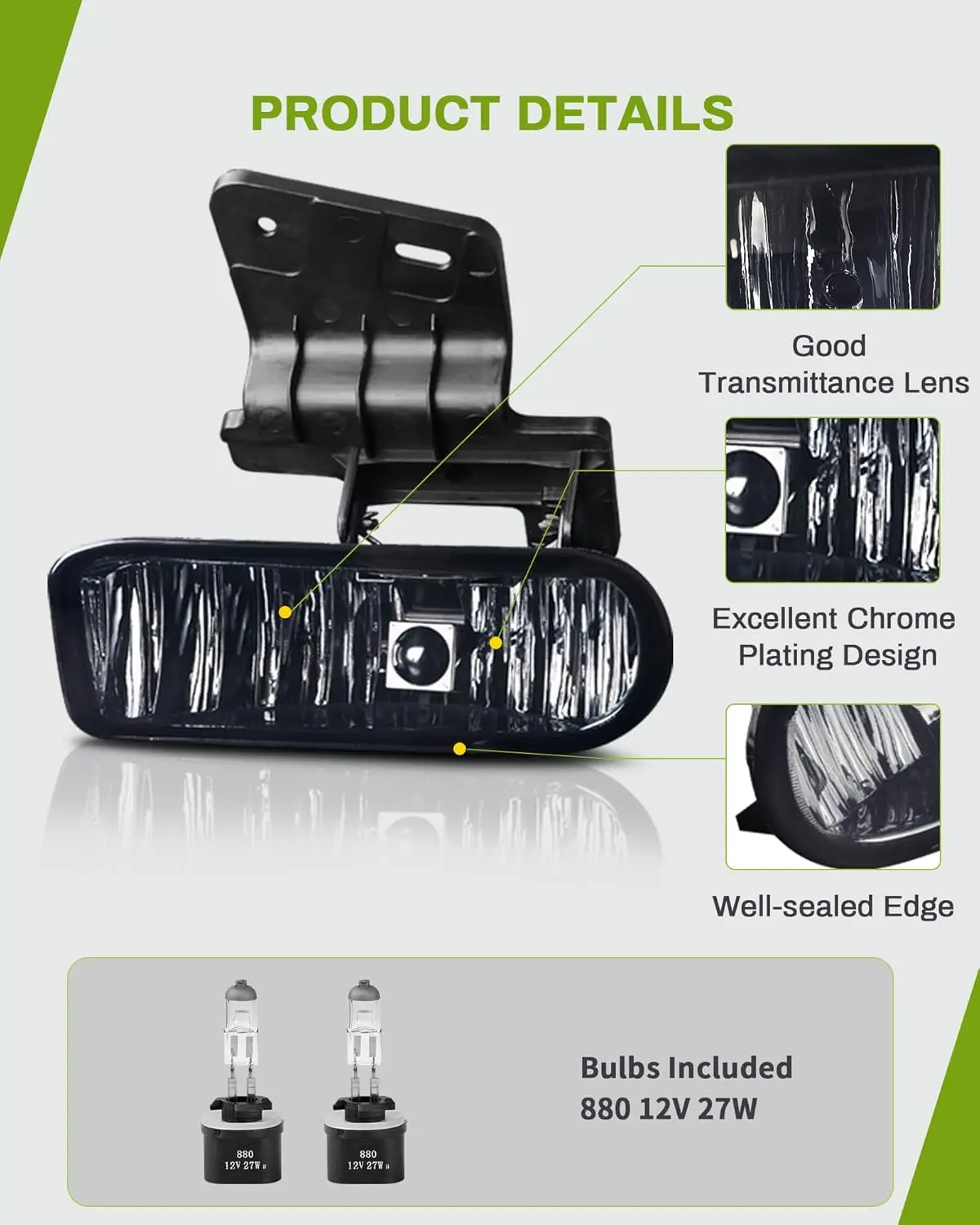 ·Powerful 12V 27W Bulbs: Operates at 12V 27W, providing reliable illumination for your vehicle.