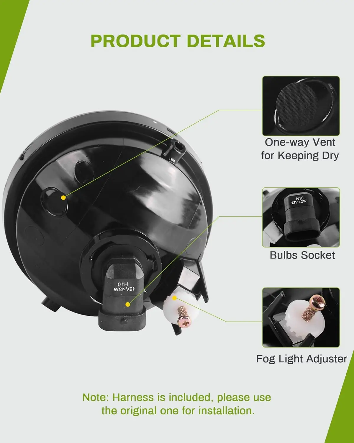 ·Bulbs: Equipped with 12V 42W H10 bulbs, ensuring reliable performance.