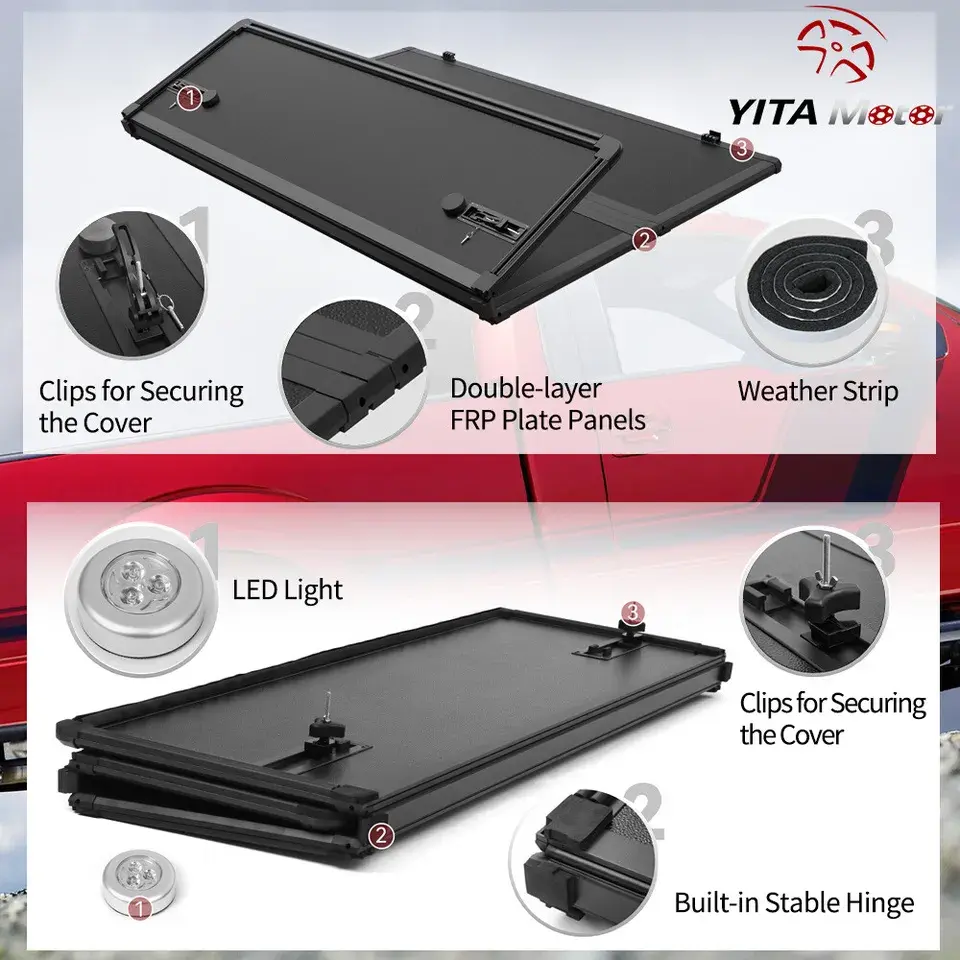 No-drill Installation: Install the hard tri-fold tonneau cover in no time without any drilling or modifications needed; Comes with detailed instructions for added convenience; Note that if your truck has cargo racks, remove them before installing this cover