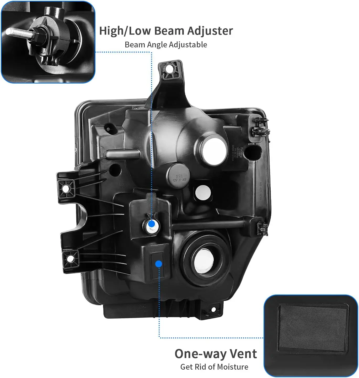 ·Improved illumination: the integrated metalized reflectors of this headlight assembly increase light distance for better visibility & driving safety in any dusky conditions