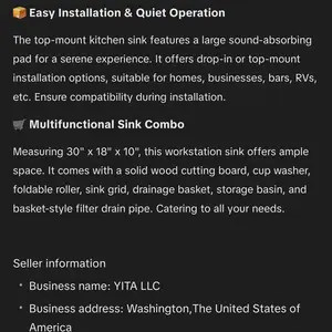 The sink is great. Missing some can not get them to reply to my messages I have left many. The product is great. Service from YITAMOTOR SUCKS