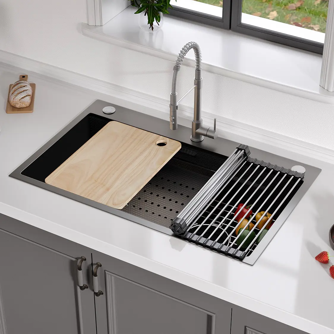 Really like the sink. Came with accessories but unfortunately didn’t fit my kitchen counter. Had to order another one like it.