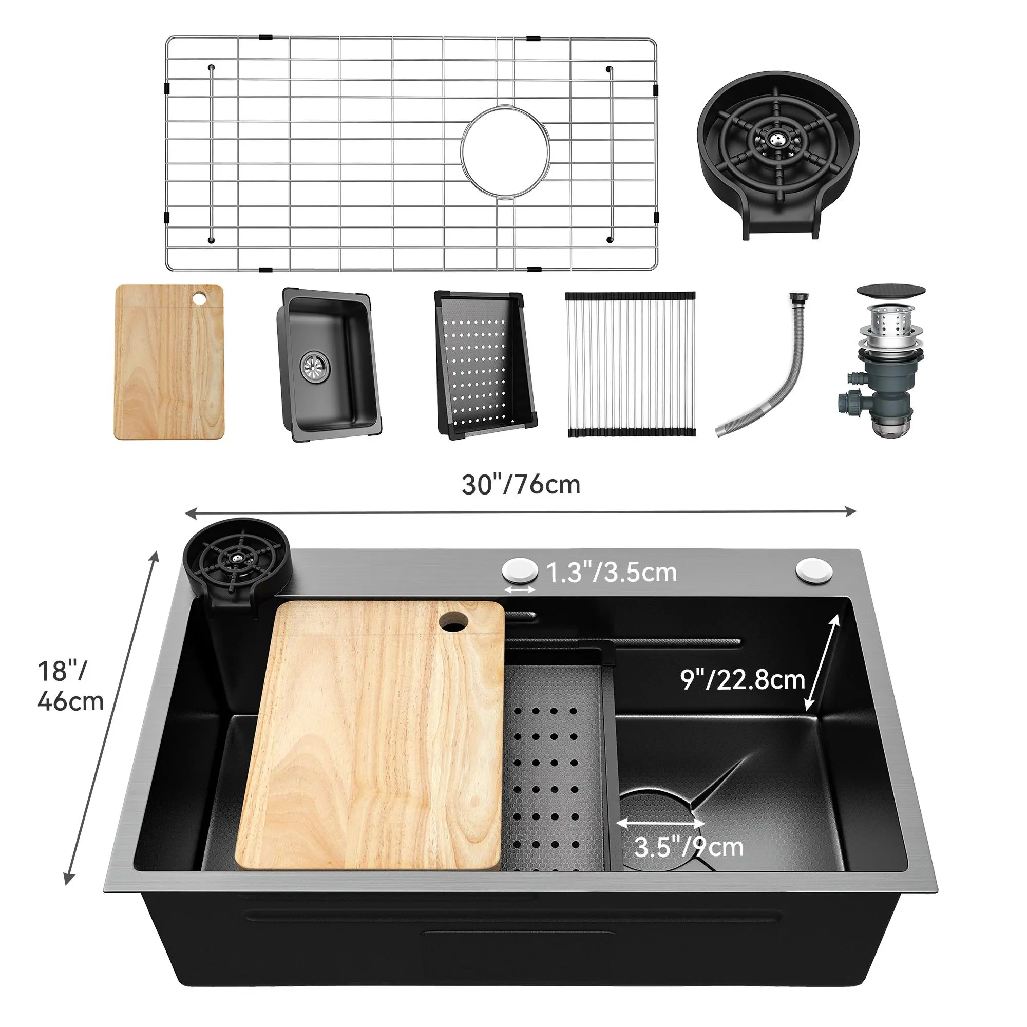 30" x 18" x 10", w/cup washer
