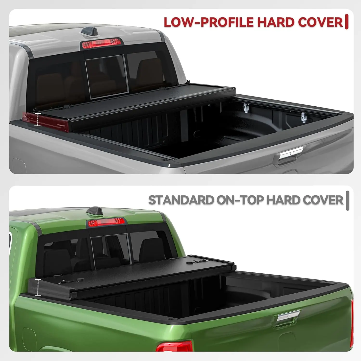5. [Fits 2019-2026 Chevrolet Silverado & GMC Sierra 1500] 5.8/6.6 Ft Bed, Low-Profile Hard Tri-Fold Truck Bed Tonneau Cover