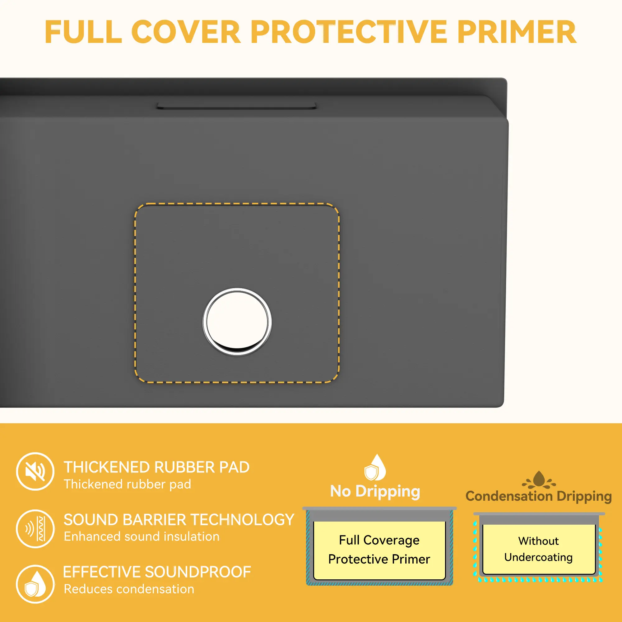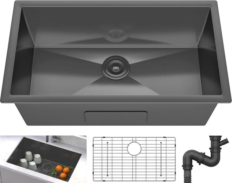 【Quiet & Seamless】The undermount kitchen sink features a quiet design with a large sound-absorbing pad for a peaceful experience; Seamlessly integrates into your countertop, adding elegance to any indoor or outdoor space; Perfect for homes, businesses, bars, RVs, and more