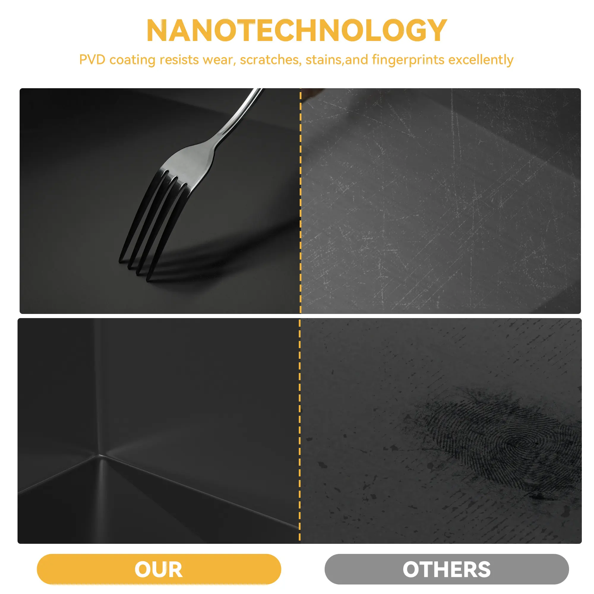 【Advanced Nano Coating】The kitchen sink workstation boasts a sleek black PVD bronze finish that not only enhances durability but also resists corrosion and scratches; Keep your modern sink fingerprint-free and water-stain-free