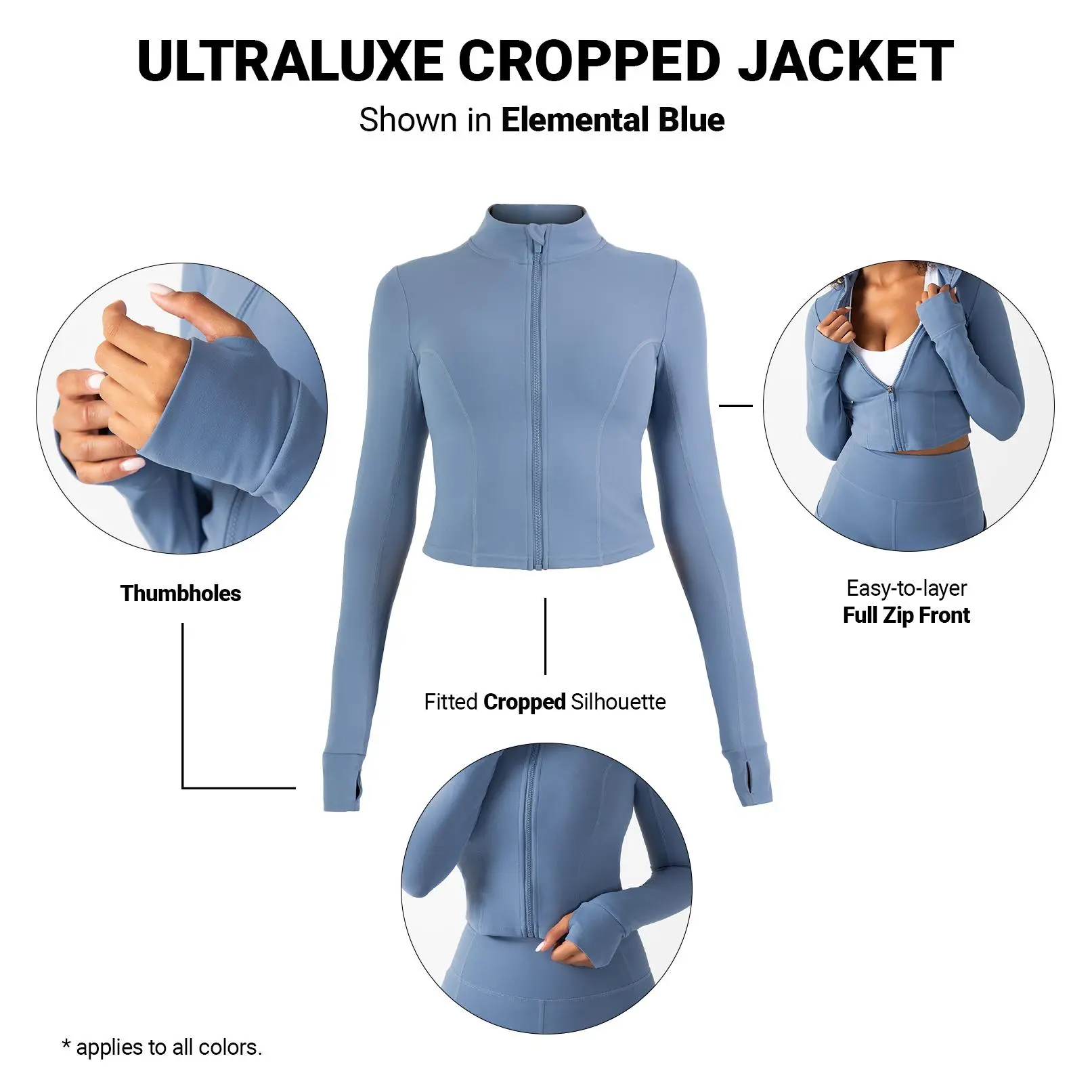 Elevate your workout wardrobe with the UltraLuxe Cropped Full Zip Jacket. This versatile piece is perfect for both outdoor activities and casual outings. Its cropped, body-hugging design ensures a sleek look, while thumbholes provide extra warmth. Experience the perfect blend of style and functionality.