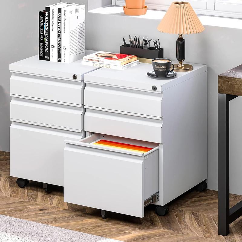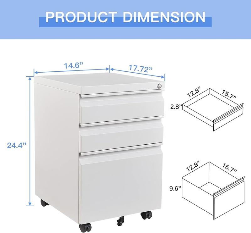 Yizosh 3 Drawer Mobile File Cabinet with Lock