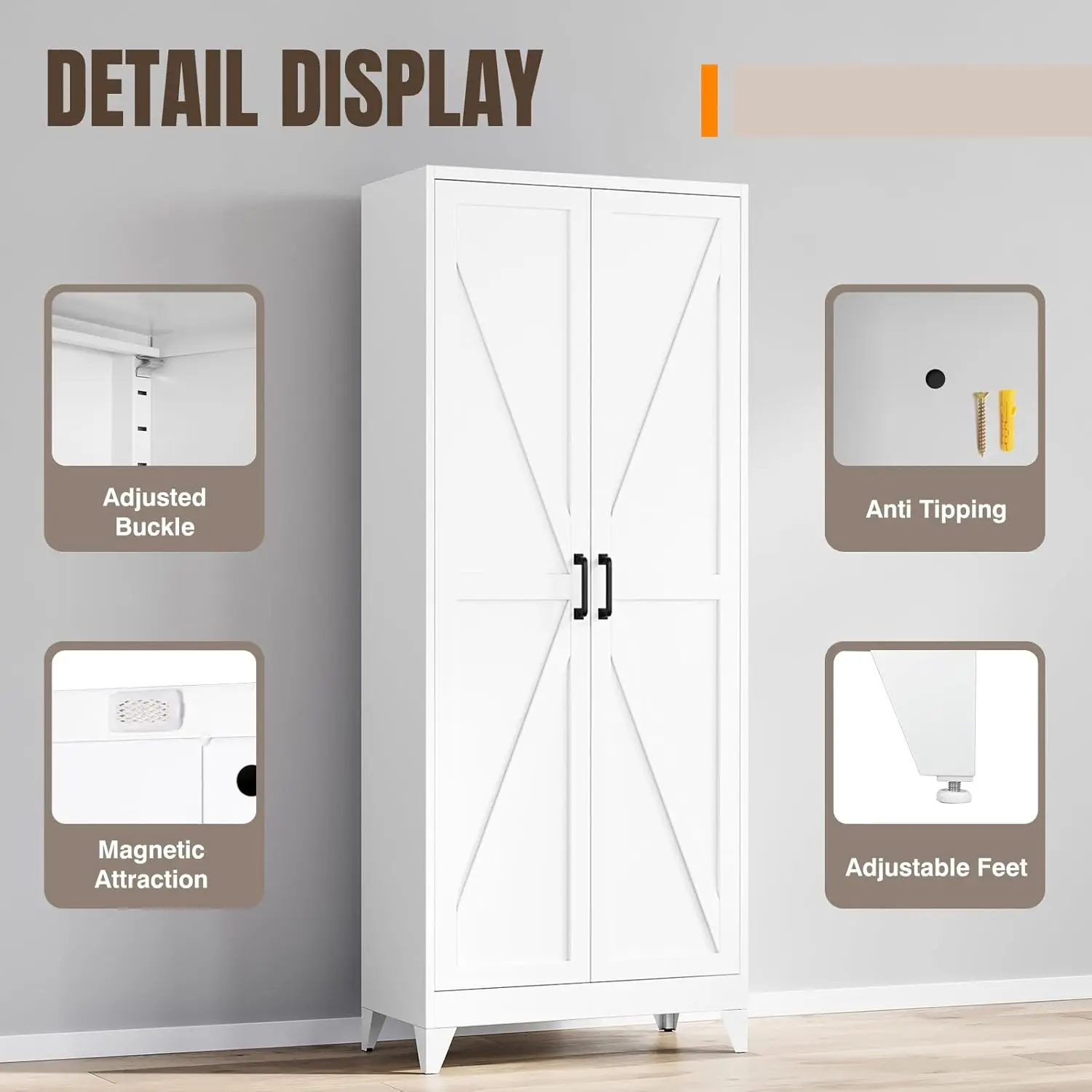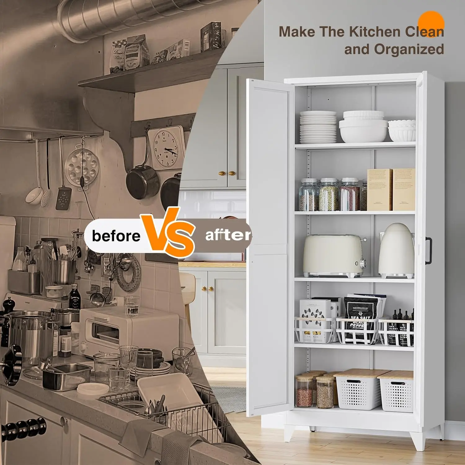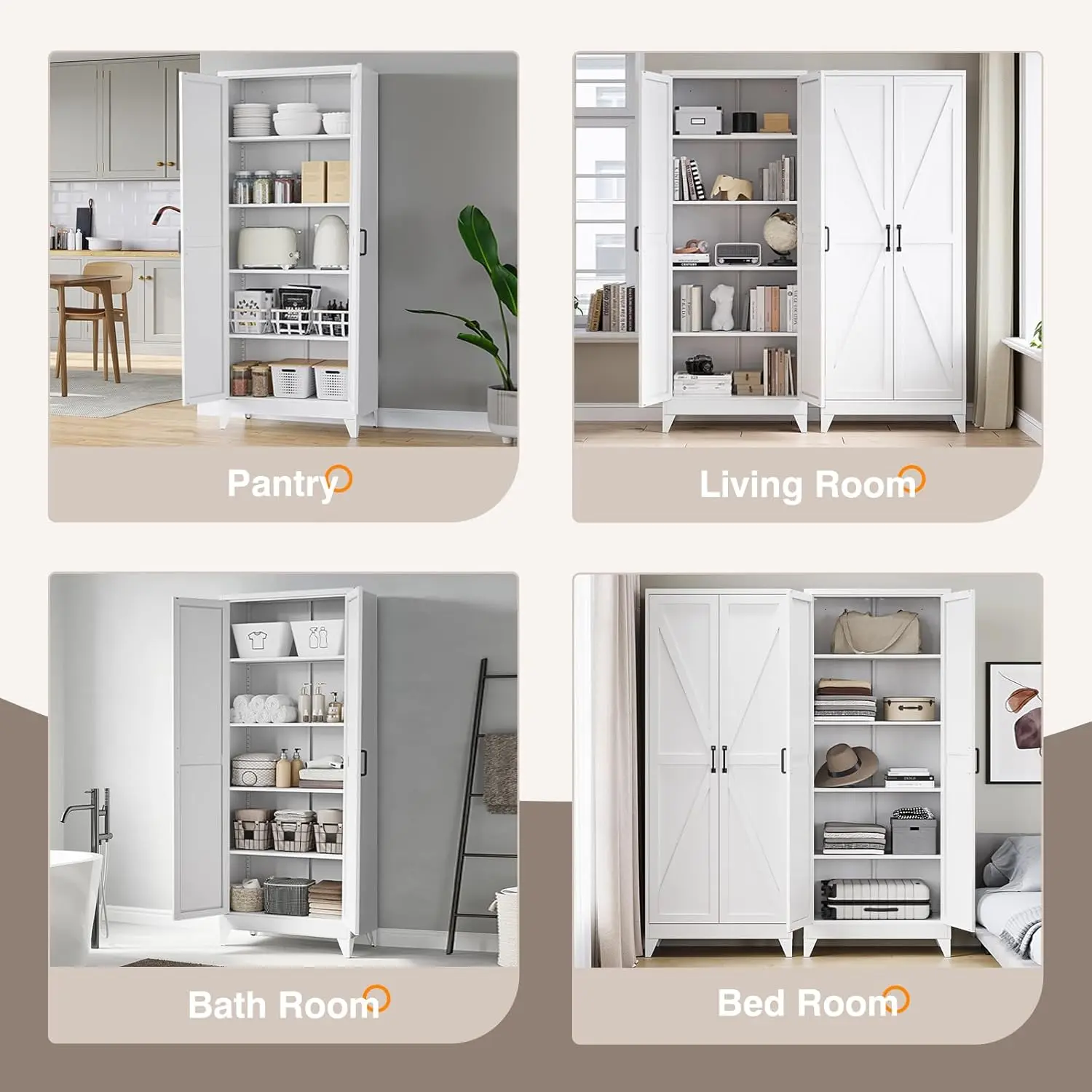 5. Yizosh Metal Storage Cabinet with Doors and 4 Adjustable Shelves 75" White Kitchen Pantry Storage 5 Tier Tall Steel Cabinet Locker for Kitchen Living Room Dining Room