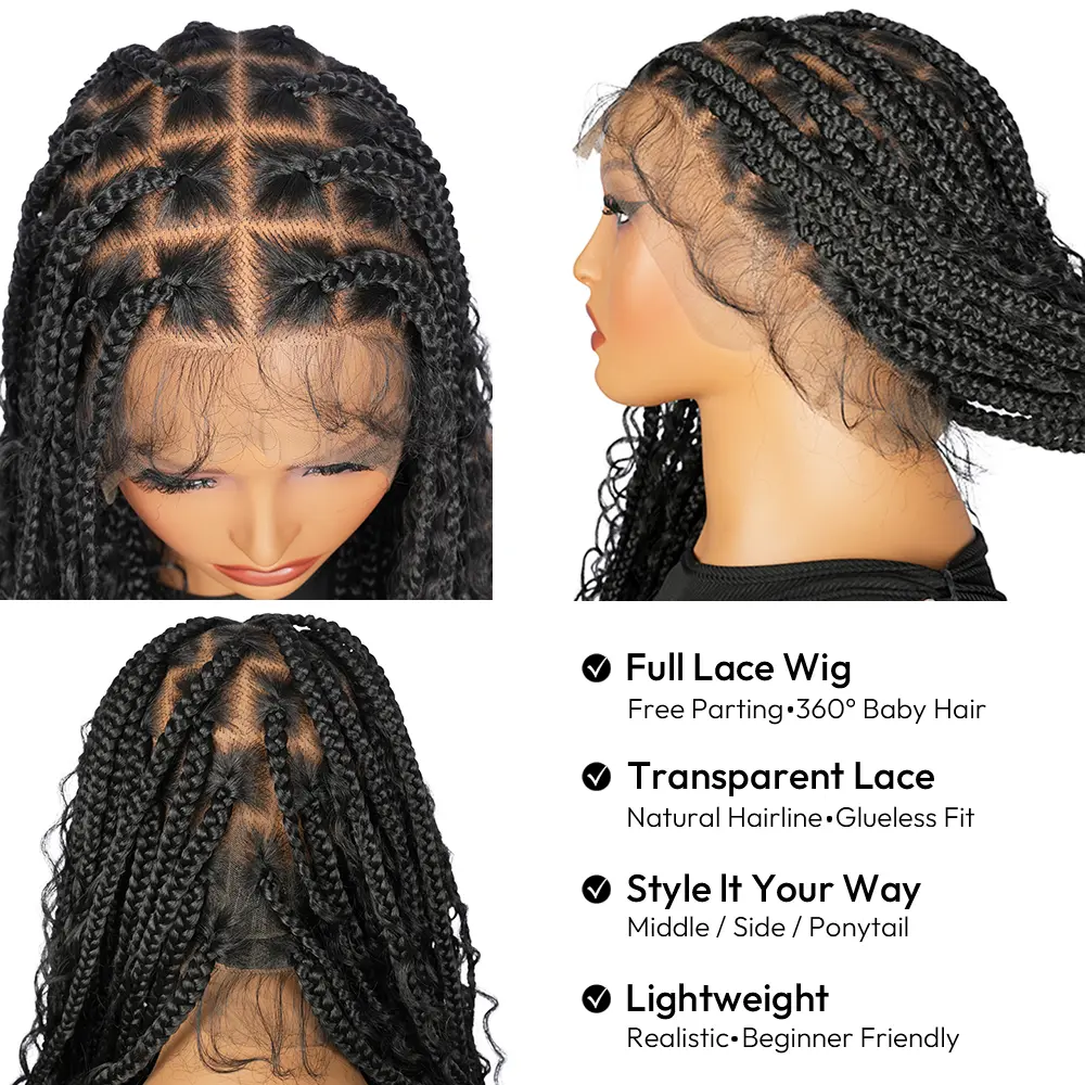 YMSGIRL 36" Full Lace Knotless Boho Braids Wig