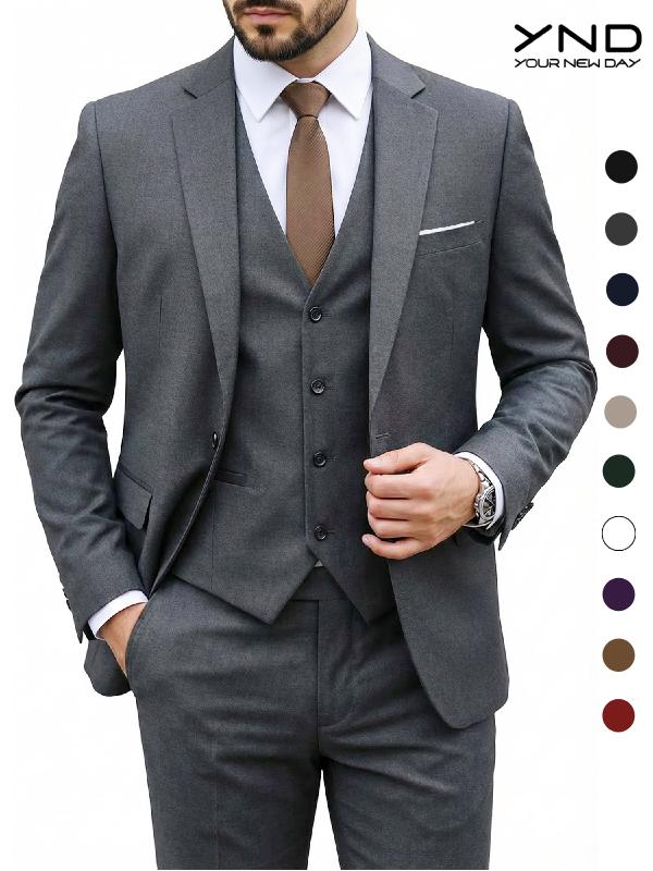 YND – Your New Day: Explore our latest suit or tuxedo set! Featuring a one-button suit jacket with a matching vest and pants for a sleek 3-piece slim fit. Comes with a perfect matching silk tie! Available in sizes XS to 3XL, offering a choice among 10 colors. Pockets inside and out feature authentic designs with shiny chrome buttons. We've mastered style, comfort, and affordability. Dive into our collection and you will know why our suits are highly sought-after!