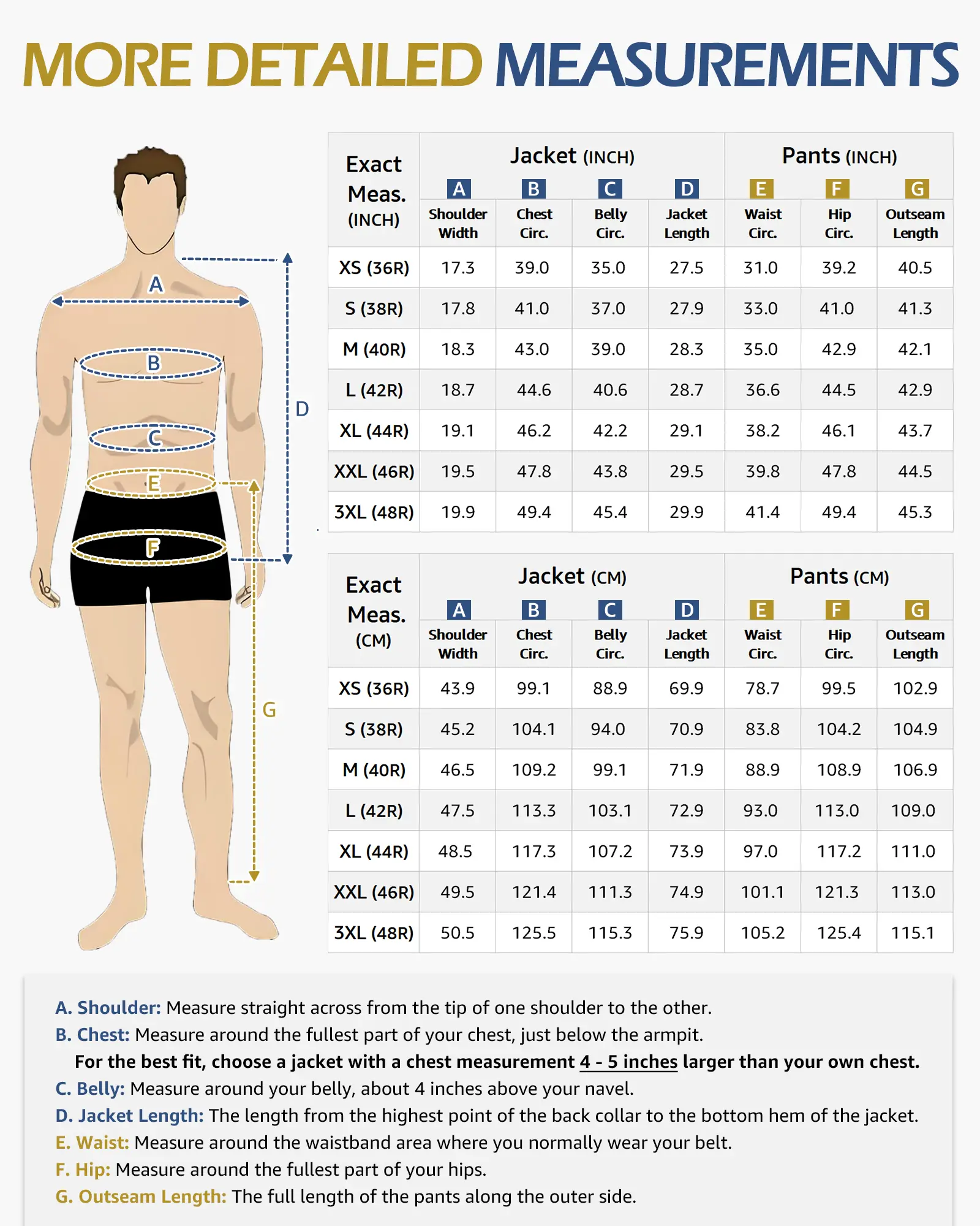 Exceptional Quality: Our suits are seriously top-notch when it comes to quality and craftsmanship. We're super picky about our fabrics, going for the premium stuff that's about 30% denser than regular suits – it's all about comfort and durability.