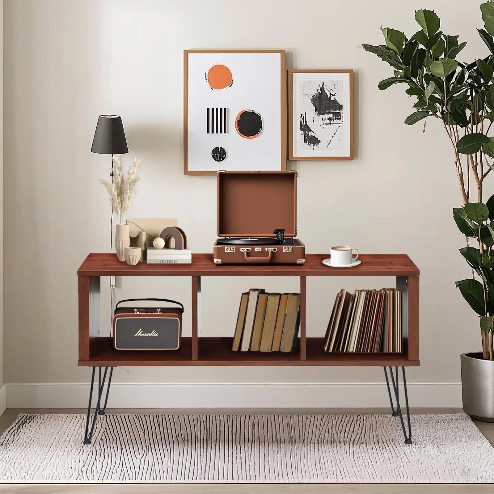 Oversized Storage 🌟- Multi-Shelf Architecture: Maximizes space with expansive storage for media components.- Organized: Open shelving keeps everything organized and within easy reach, reducing clutter.
