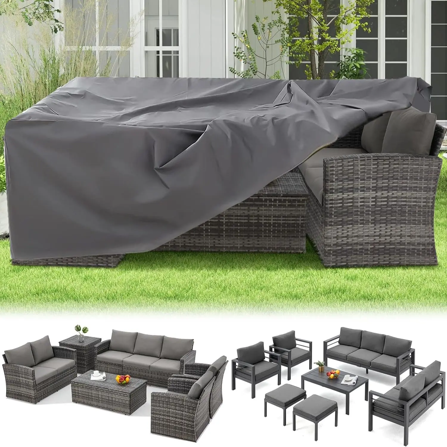 ·HEAVY DUTY MATERIAL - Our outdoor furniture covers are made of 600D upgraded oxford fabric along with a premium sealing surface. This heavy-duty material makes the covers waterproof, wrinkle-resistant and crack-resistant for extra durability.