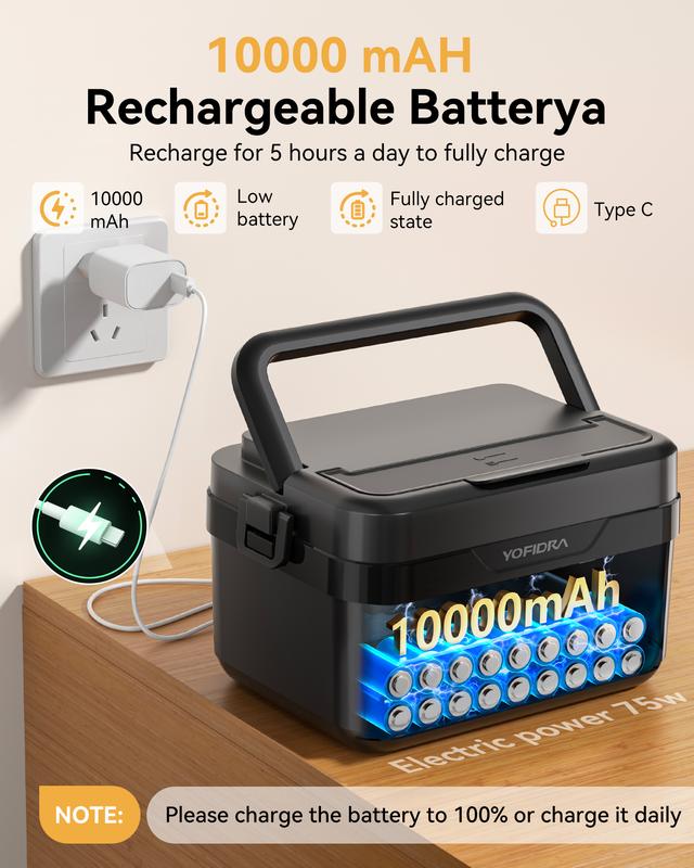 It includes a carrying bag for easy transport.Making it versatile for any location with 10000mAh Battery . This modern lunch box combines functionality with a stylish appearance.