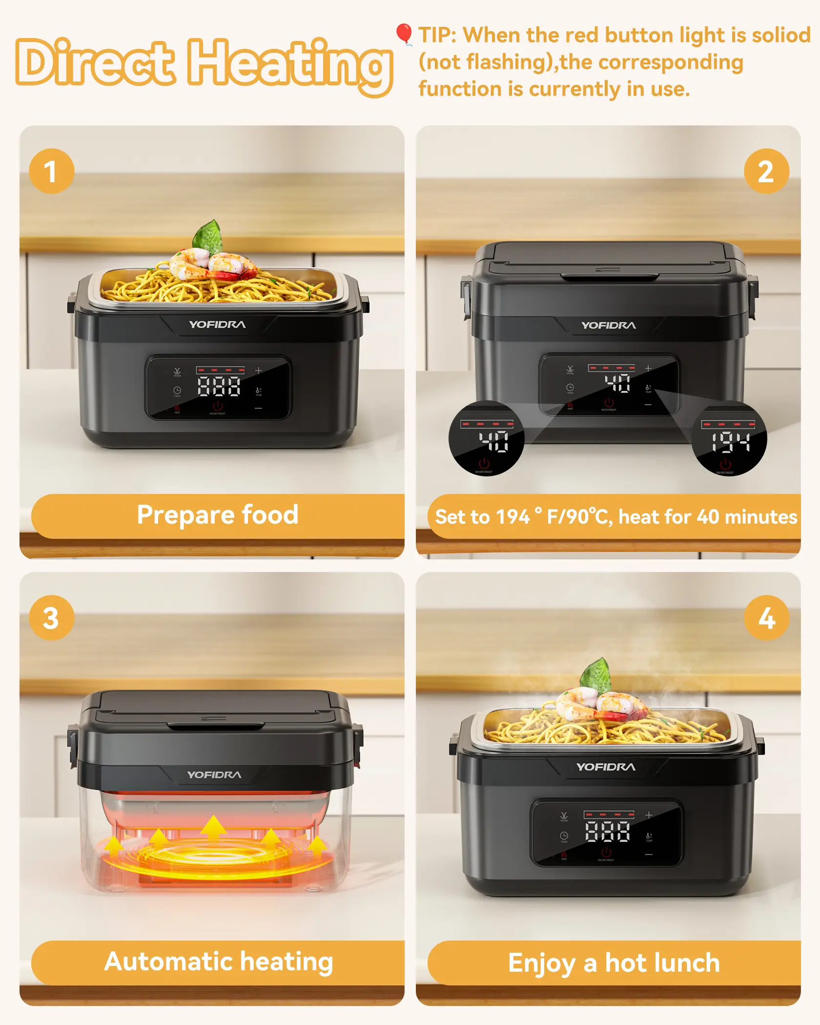 I love this heated lunch box set my timer for 11:30 turn it on in the morning food is hot and ready on time everyday.