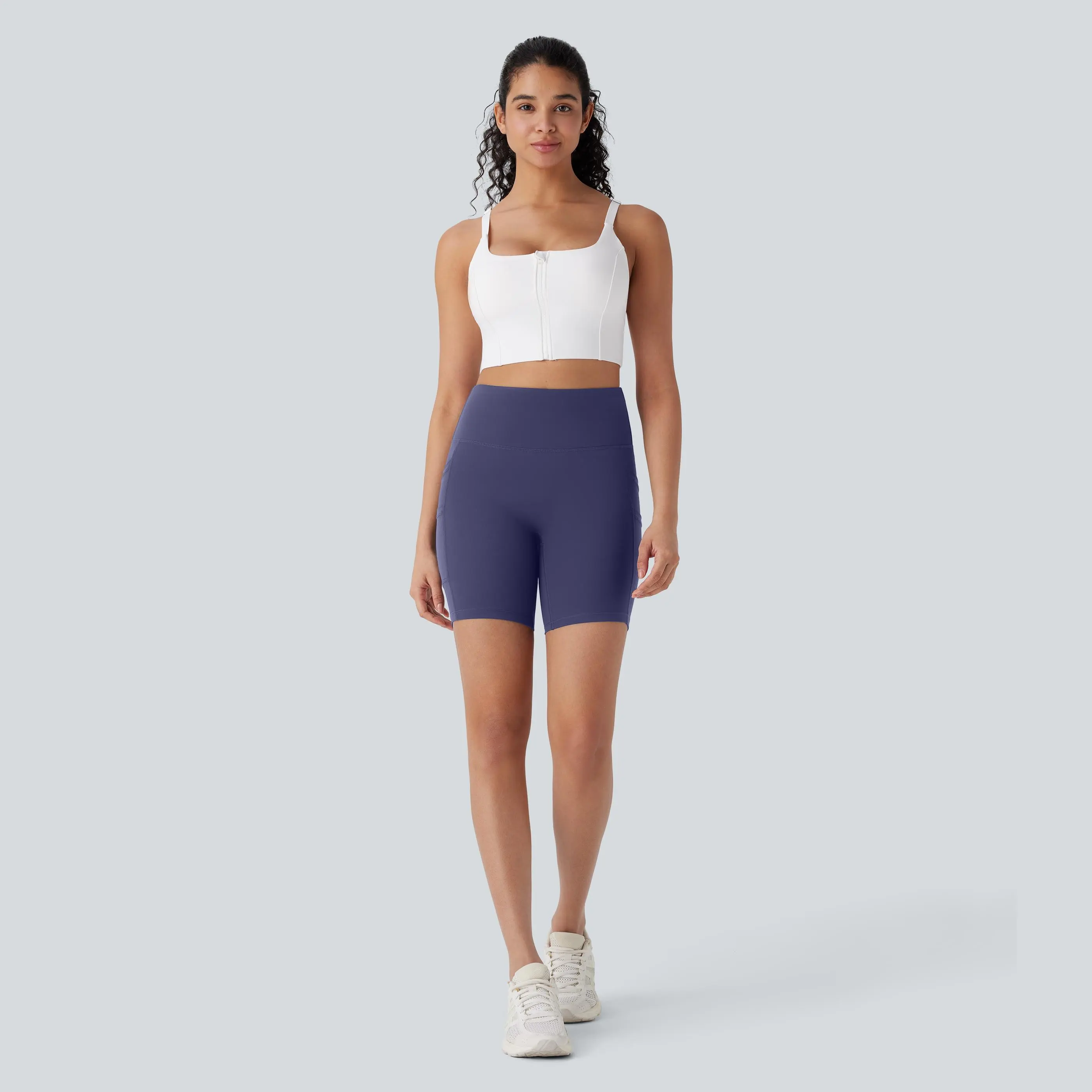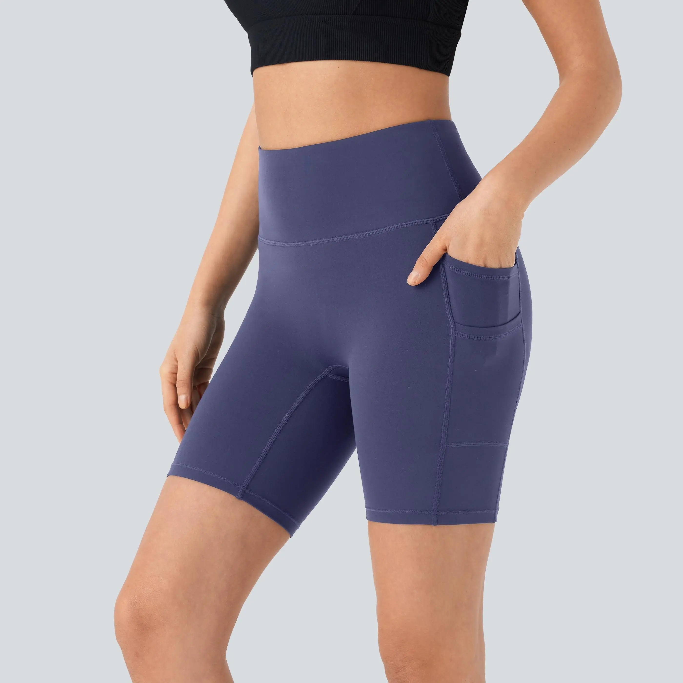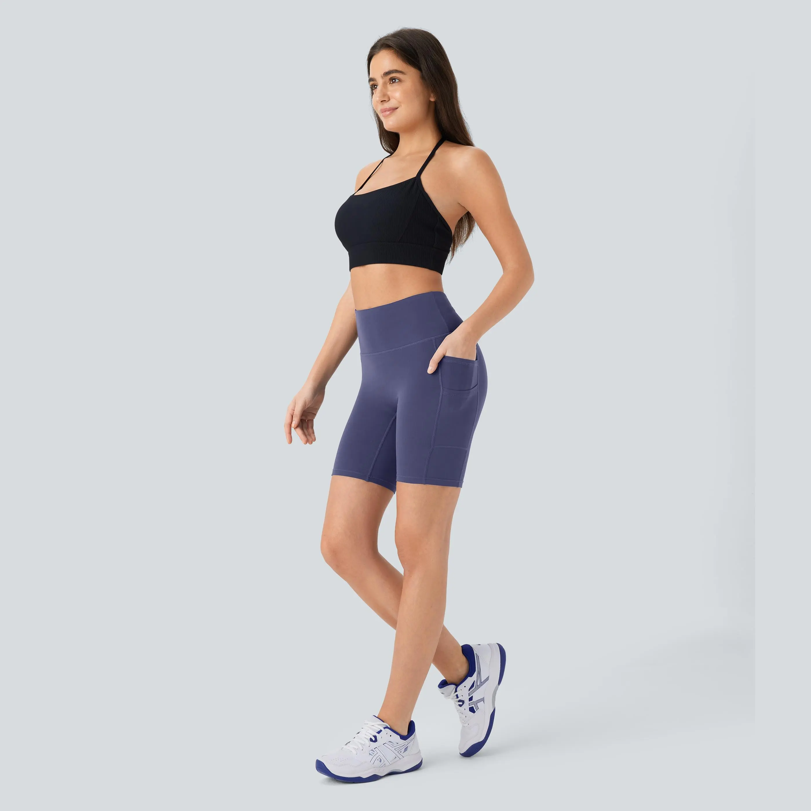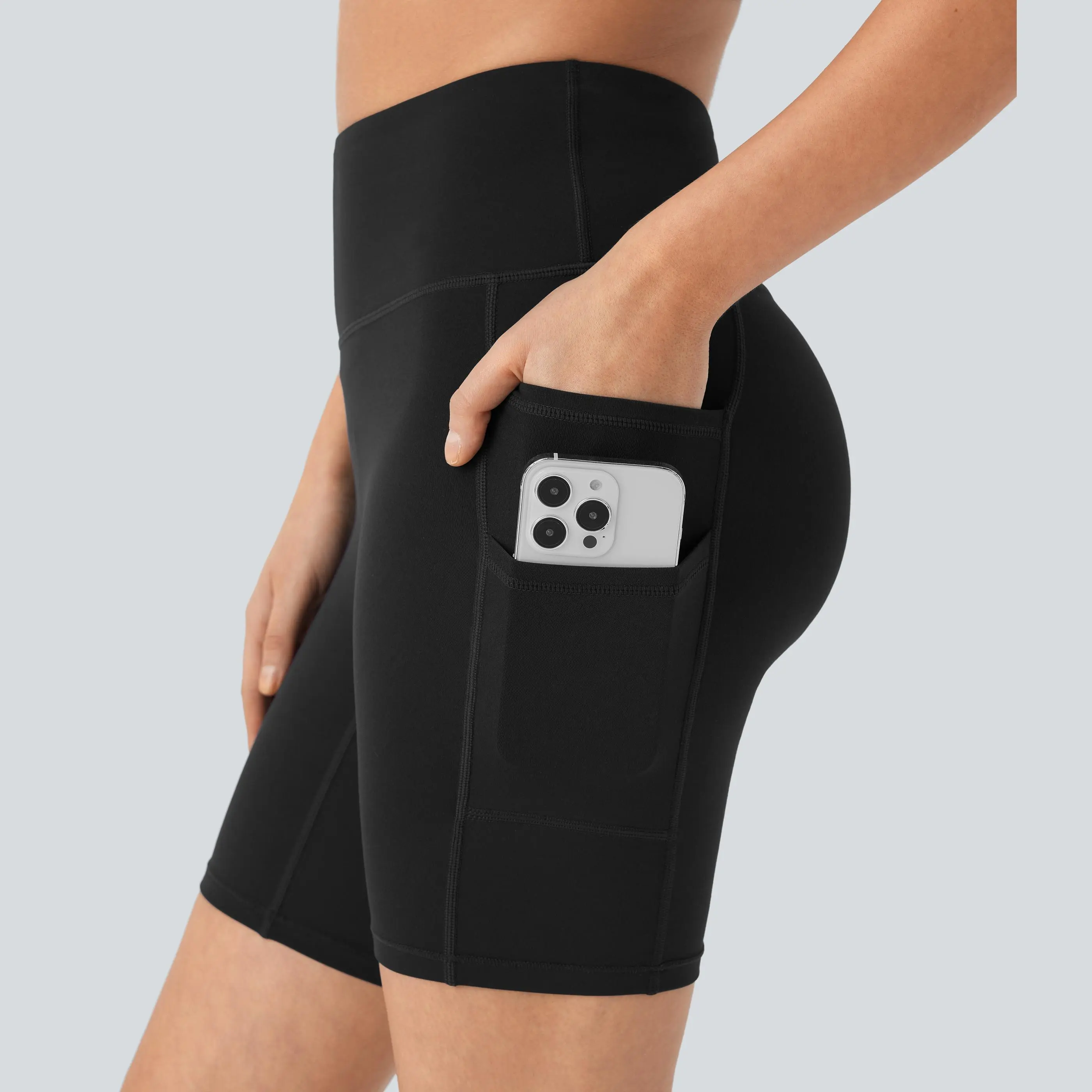 5. Halara Softlyzero High Waisted Double Pockets Yoga Biker Shorts 7''-UPF50+