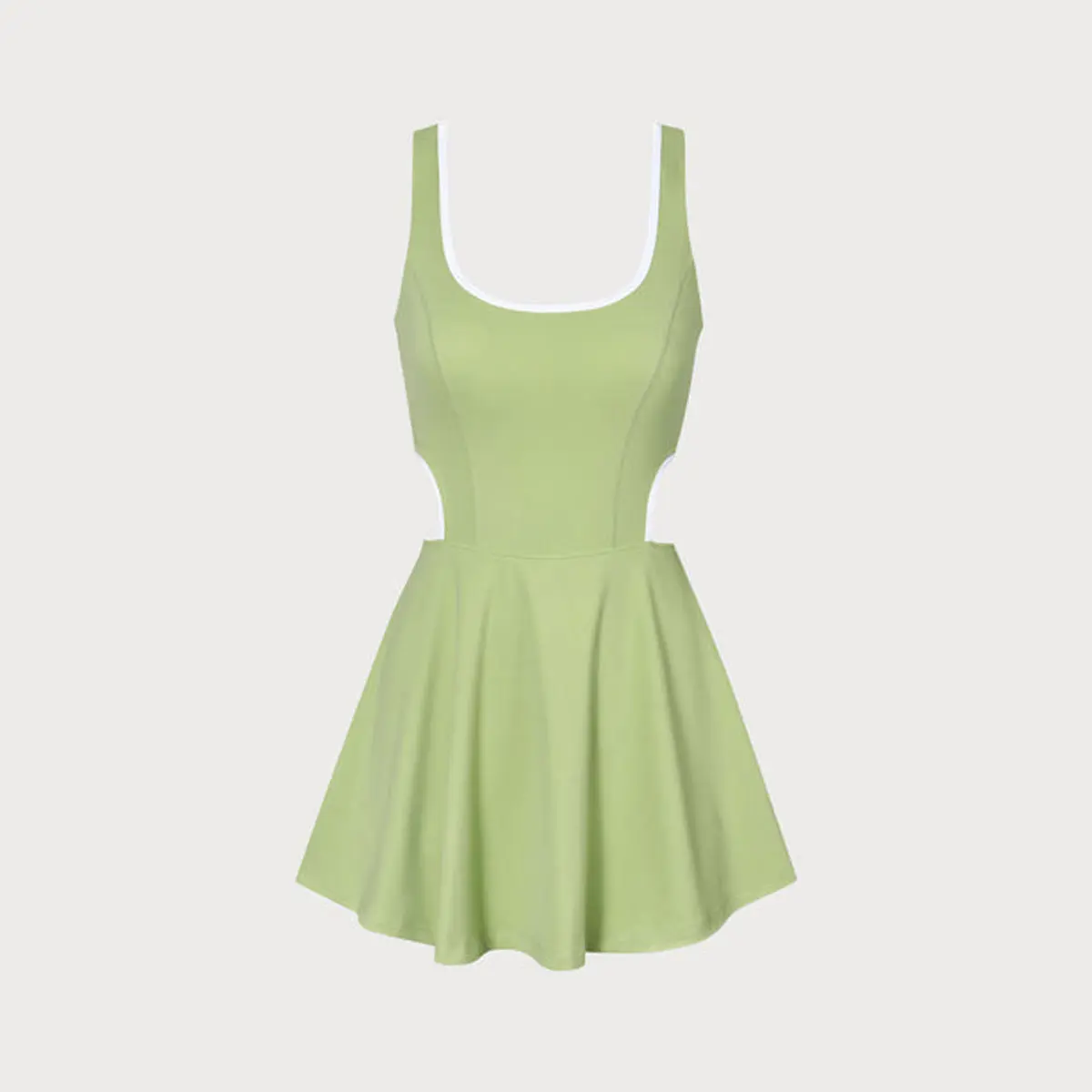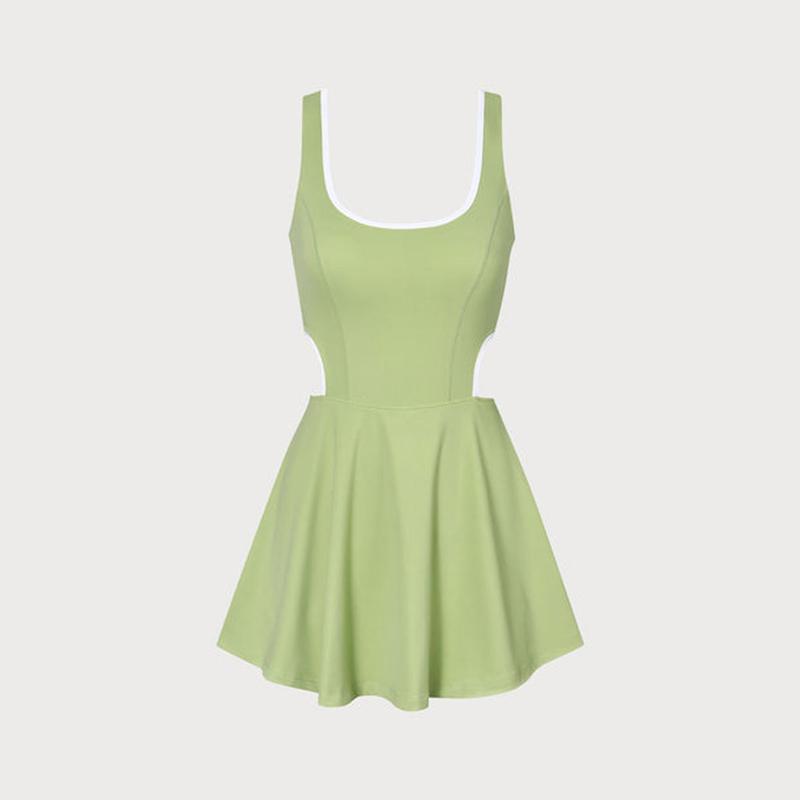Fabric: This Cut Out Yoga Dress is made of Nylon and Spandex. Nylon is a flexible synthetic fiber, waterproof, and can take rubbing and scraping without wearing away. Spandex is lightweight and comfortable to wear, resistant to sweat, has excellent elasticity, and is durable and robust.