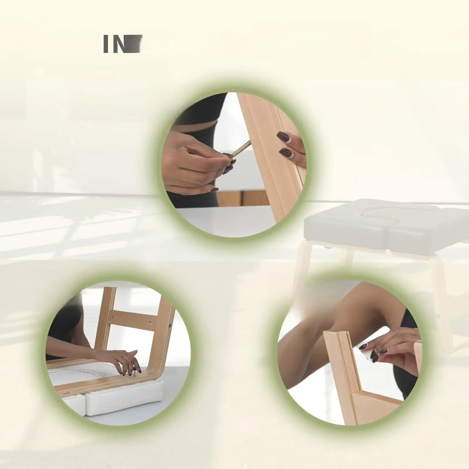 ·Stable & comfortable: wood frame in rounded rectangular shape holds up to 300 lbs; non-slip pads at the bottom give you extra safety assurance on the inversion stool; 2.5-inch cushion relieves pressure on the neck & shoulder when doing a headstand