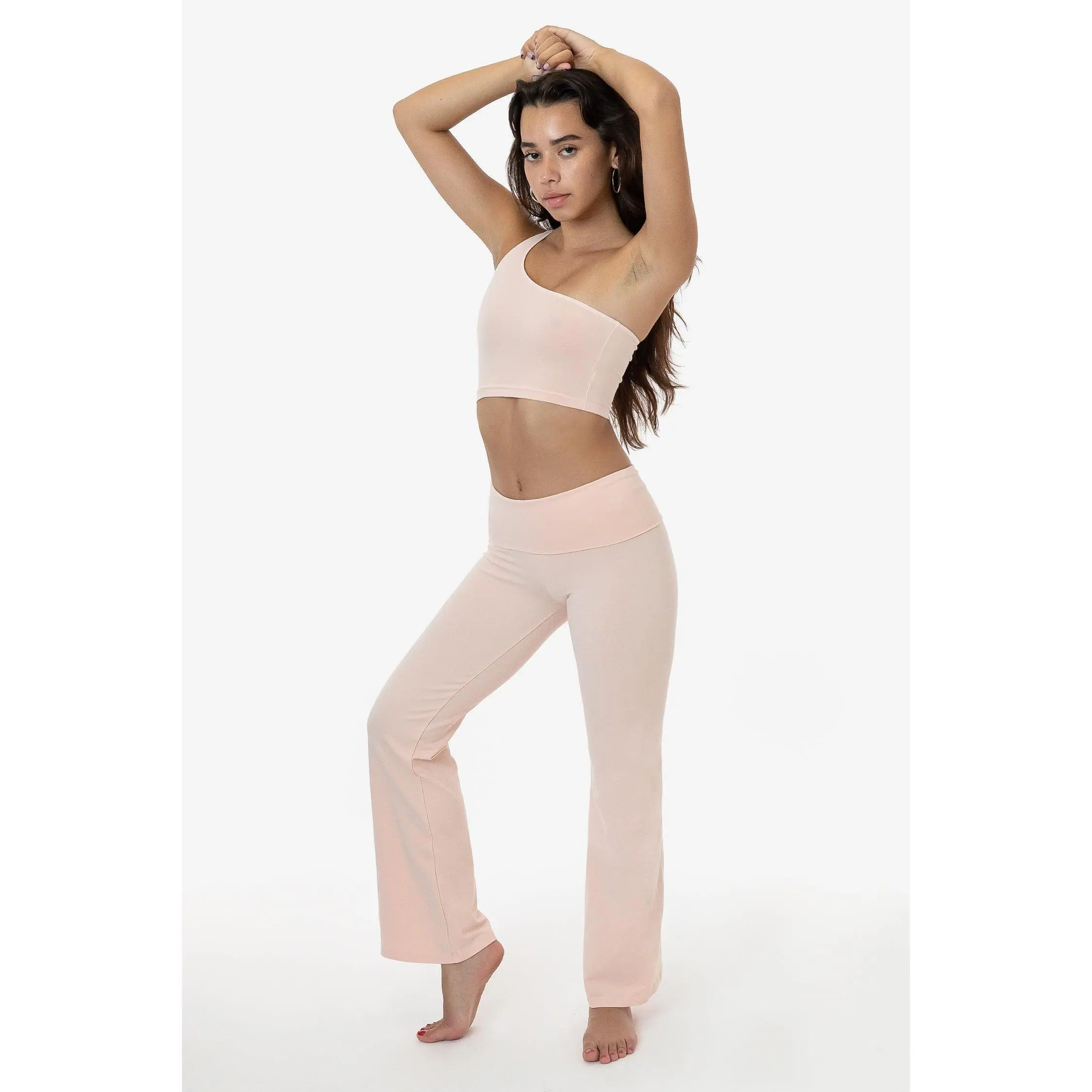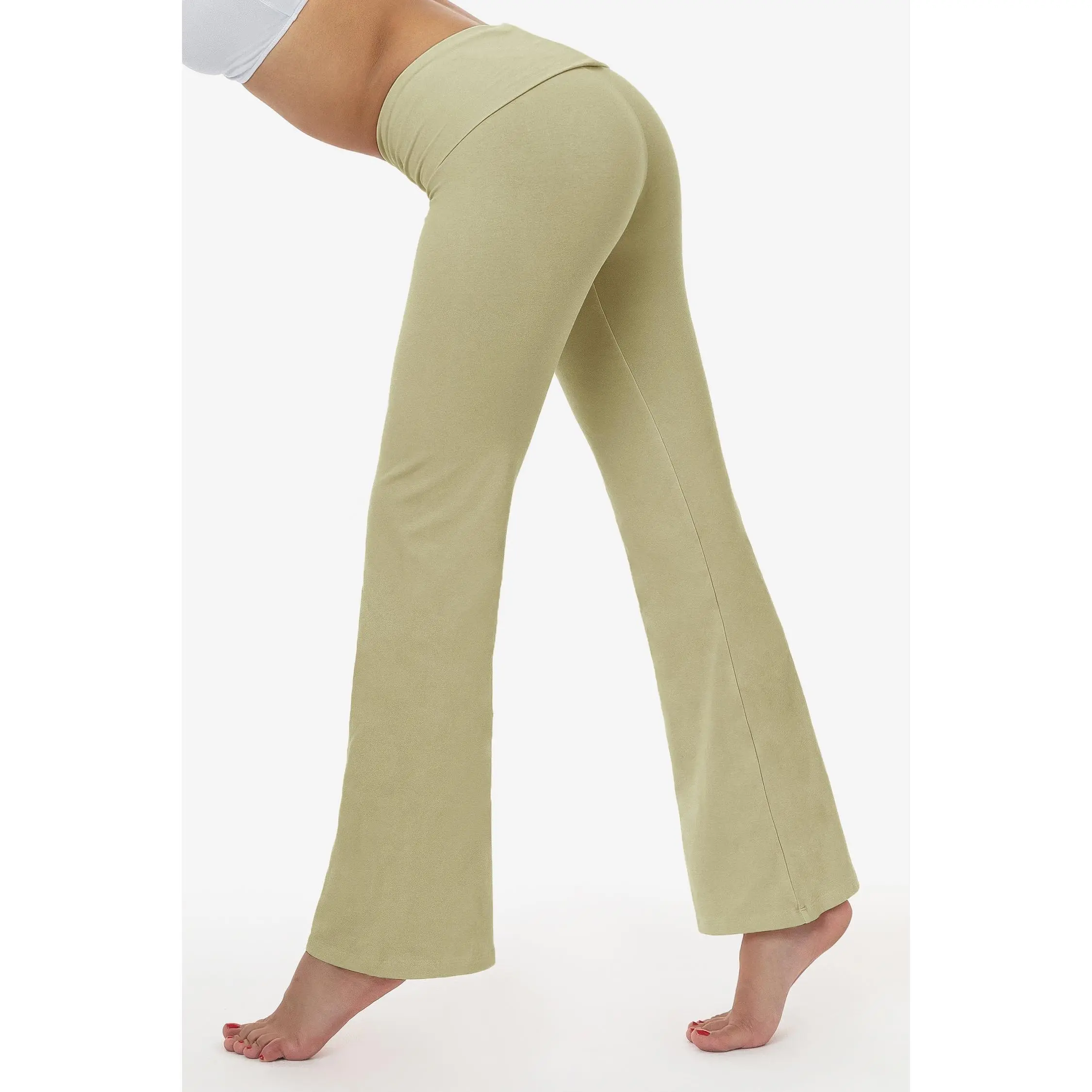 These Garment Dye Cotton Spandex Yoga Leggings are a universally flattering everyday staple and are made of a heavyweight cotton spandex with extra compression so you feel supported. Pair these versatile, flared leggings with any of our matching crop tops and dress them up or down. The folder waistband on this style allows them to be worn super high, mid-rise or low rise. This style has been garment dyed for a rich, one-of-a-kind wash with a unique texture and color. Runs true to size.Made in South Central, Los Angeles. Our experienced sewers earn up to $25 an hour and no less than $17.87; additionally workers have healthcare benefits for less than $15 per week, a 401k plan, paid sick days, subsidized bus passes and favorable overtime benefits.This item is a garment dye product. Garment dye items can be distinguished by “GD” at the end of their style number, and will not match piece dye items (items without “GD” at the end of their style number). To learn more about the garment dye process, please click here.• Garment Dye• Heavyweight Cotton Spandex• Wash cold with like colors• Shrink-Free• Made in Los Angeles, Calif.• Cotton Spandex: 95% Cotton / 5% Elastane• Heather Grey: 87% Cotton / 8% Poly / 5% Elastane