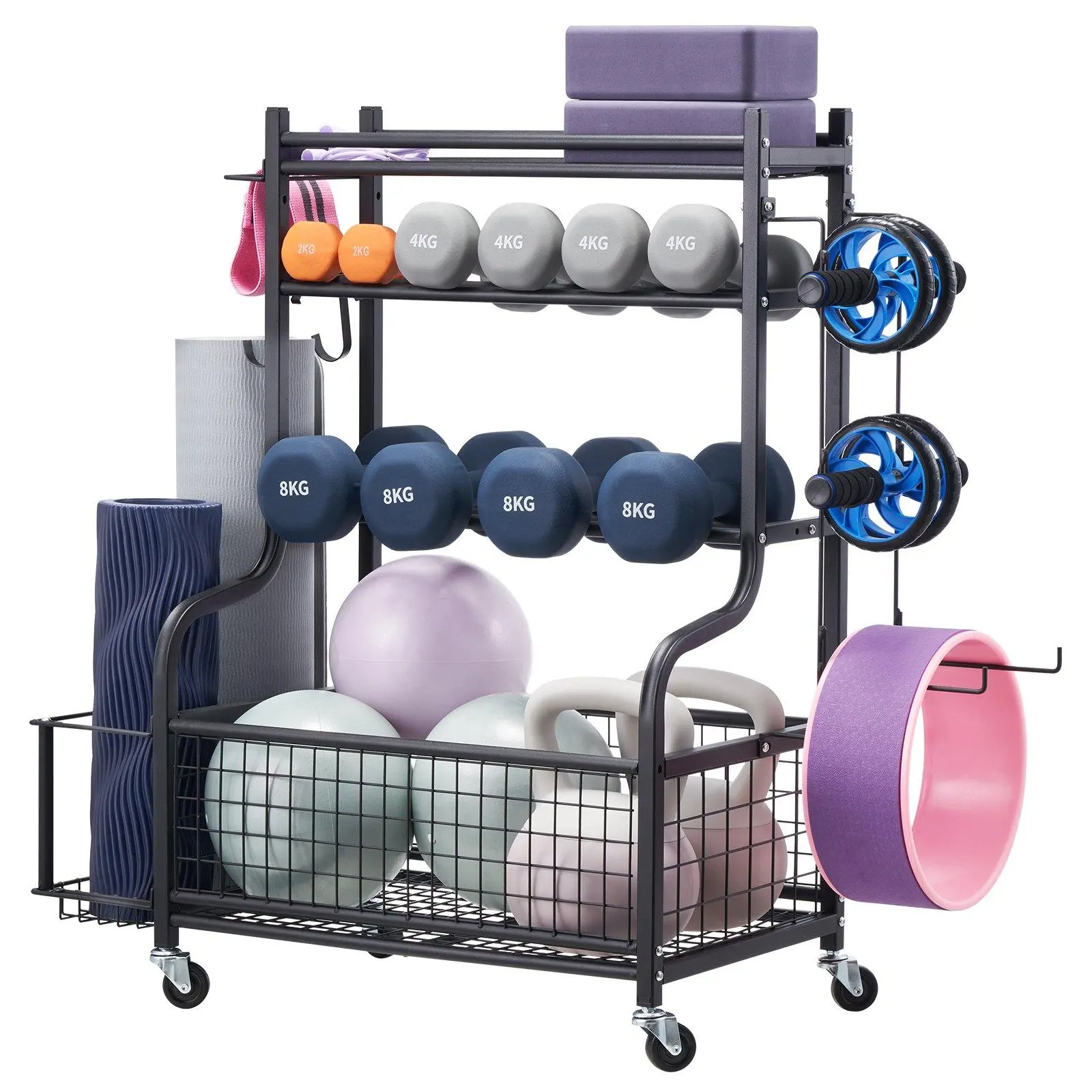 ·Suitable for Various Settings: This all in one home exercise and fitness gear rack is perfect for organizing items in gyms, schools, and any sports venue, effortlessly keeping your space neat and orderly