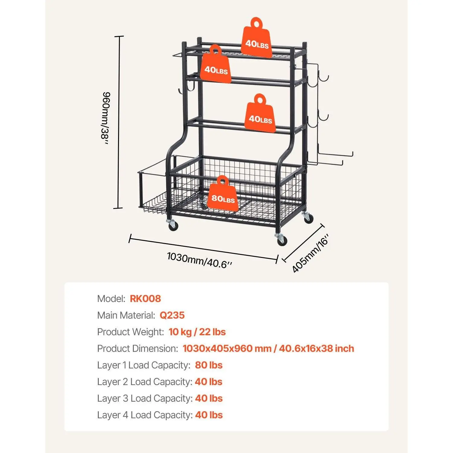 ·Sturdy and Durable Material: This workout equipment storage organizer is made from high-quality powder-coated steel for the frame and thickened tubing, ensuring durability and wear resistance for years of use. The rack can support up to 200 lbs (80 + 40 + 40 + 40 lbs), providing lasting storage solutions. The non-slip dumbbell slots are designed to prevent the risk of weights falling