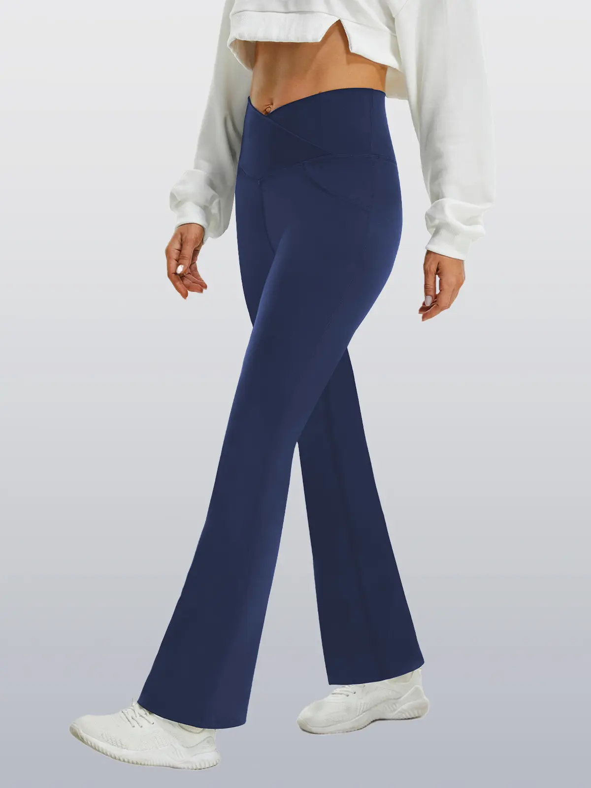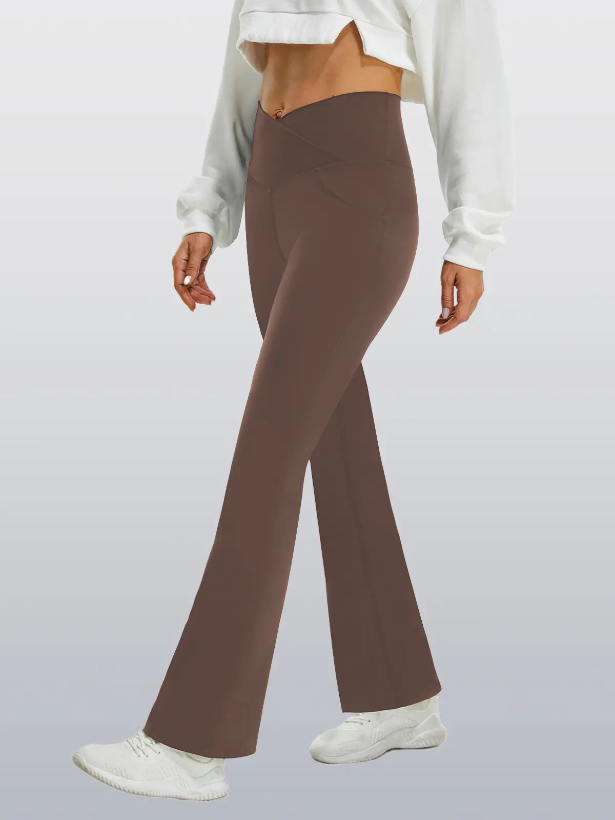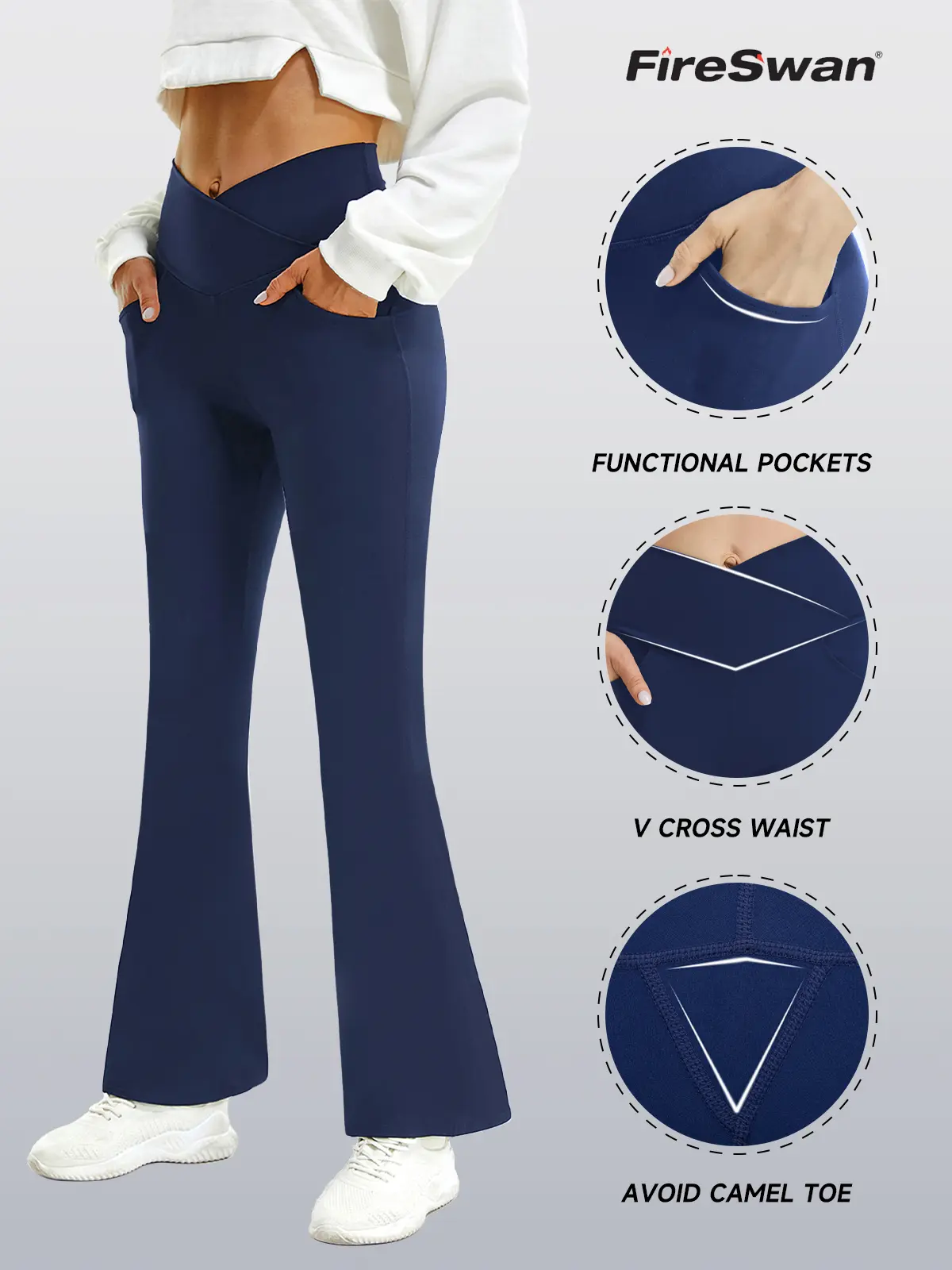 5. FireSwan Women's Yoga Pants with Pockets Crossover High Waisted Bootcut Pants for Women Gym Workout Flare Leggings