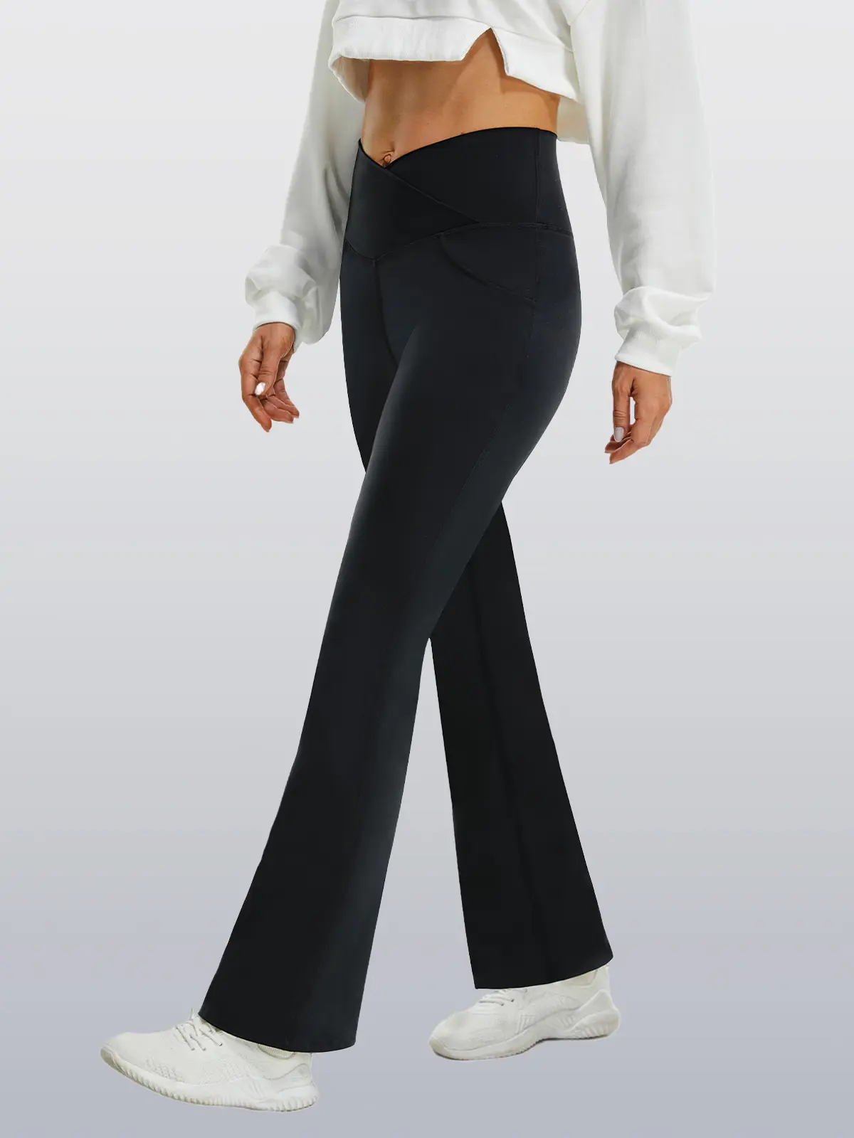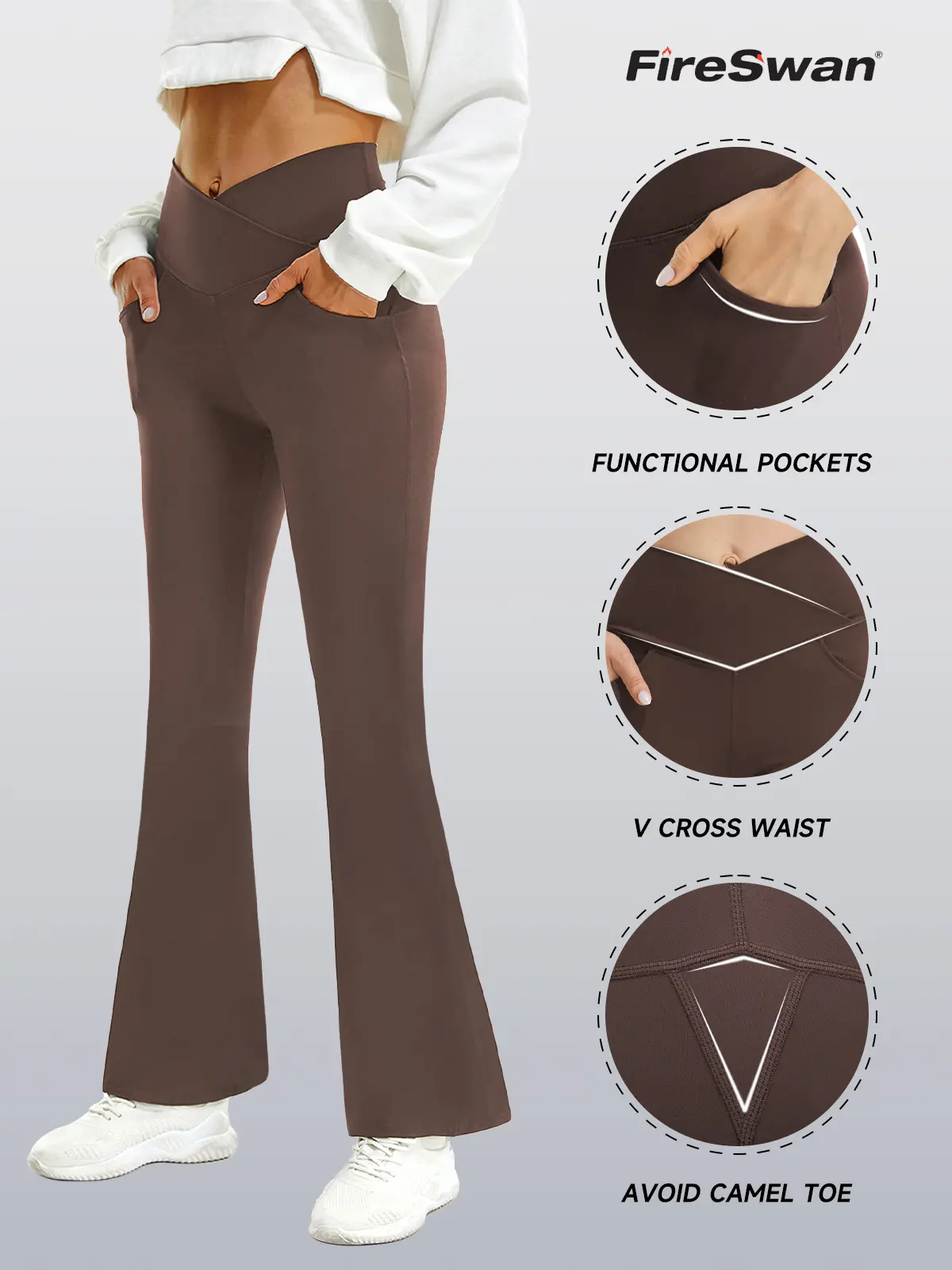 FireSwan Women's Yoga Pants with Pockets Crossover High Waisted Bootcut Pants for Women Gym Workout Flare Leggings